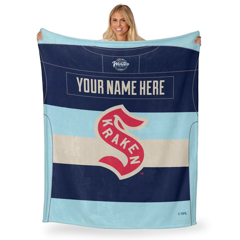 NHL Seattle Kraken Jersey Personalized Silk Touch Throw Blanket 50x60 Inches
