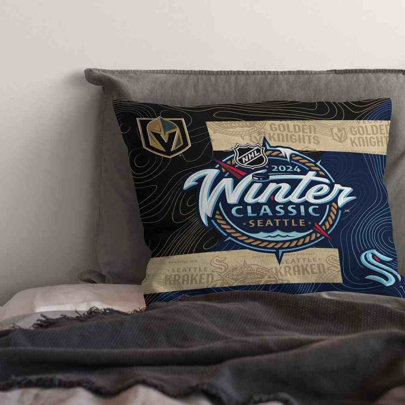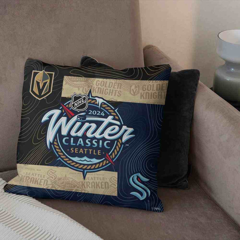 Elevate your passion for the thrilling NHL 2024 Winter Classic with our Submerge soft and comfortable Decorative Pillow. Immerse yourself in the spirit of the game as the mighty Kraken face off against the formidable Knights in this year's exhilarating outdoor ice hockey spectacle. Whether you're cheering from the sidelines or enjoying the game from the comfort of your home, this pillow is a must-have accessory to showcase your allegiance.