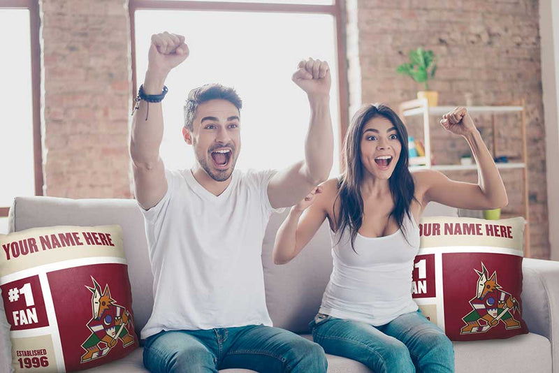 Decorate your couch with an Officially Licensed NHL "Colorblock" Personalized Pillow by TheNorthwest. Proudly show off your favorite hockey team with this soft and comfortable 18"x 18" square pillow that features your personalization in a color block layout above the team logo, established year, and number 1 fan. Give this personalized pillow as a special gift or personalize one for yourself!
