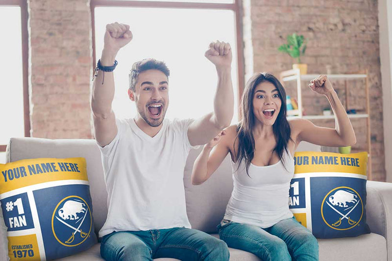 Decorate your couch with an Officially Licensed NHL "Colorblock" Personalized Pillow by TheNorthwest. Proudly show off your favorite hockey team with this soft and comfortable 18"x 18" square pillow that features your personalization in a color block layout above the team logo, established year, and number 1 fan. Give this personalized pillow as a special gift or personalize one for yourself!