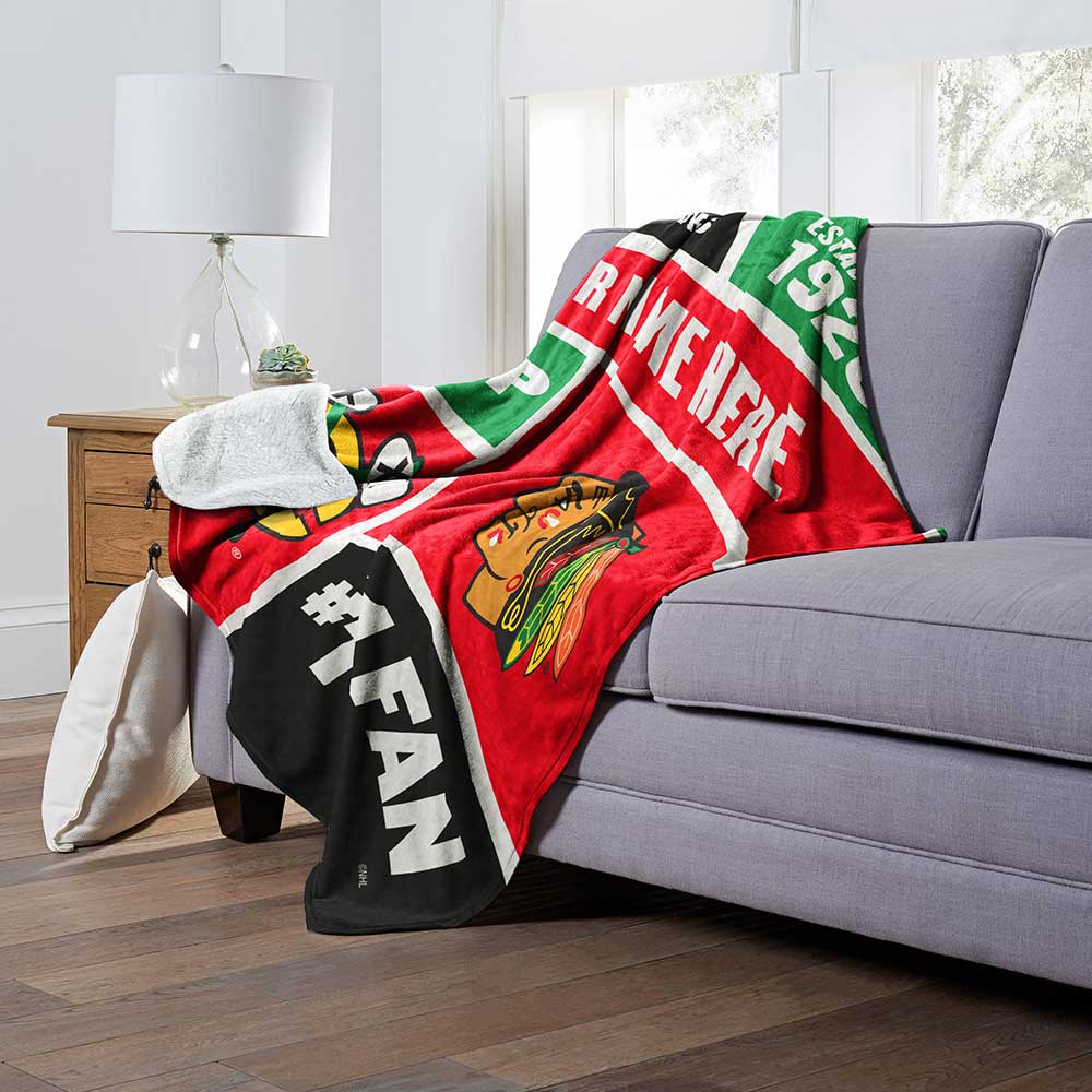 NHL Chicago Blackhawks Colorblock Personalized Silk Touch Sherpa Throw Blanket 50x60 Inches