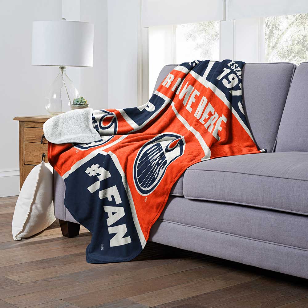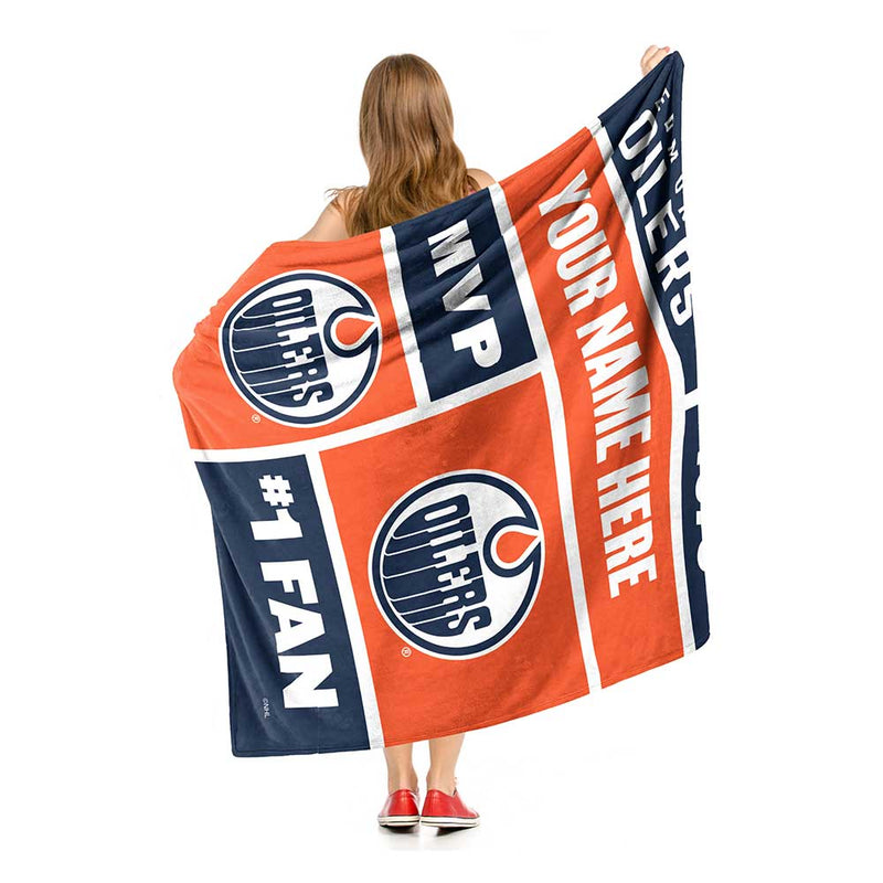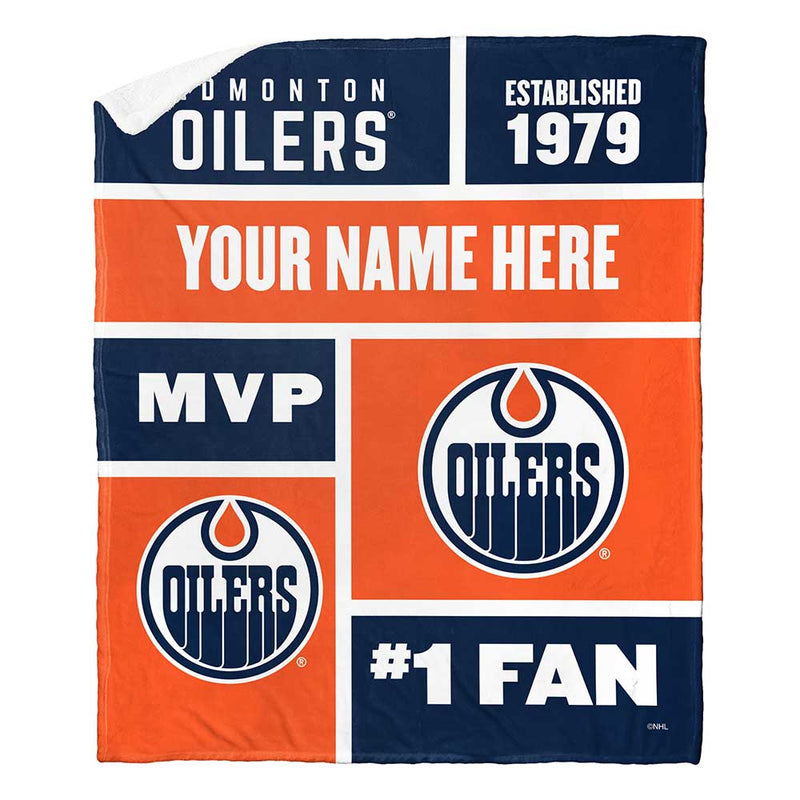 NHL Edmonton Oilers Colorblock Personalized Silk Touch Sherpa Throw Blanket 50x60 Inches