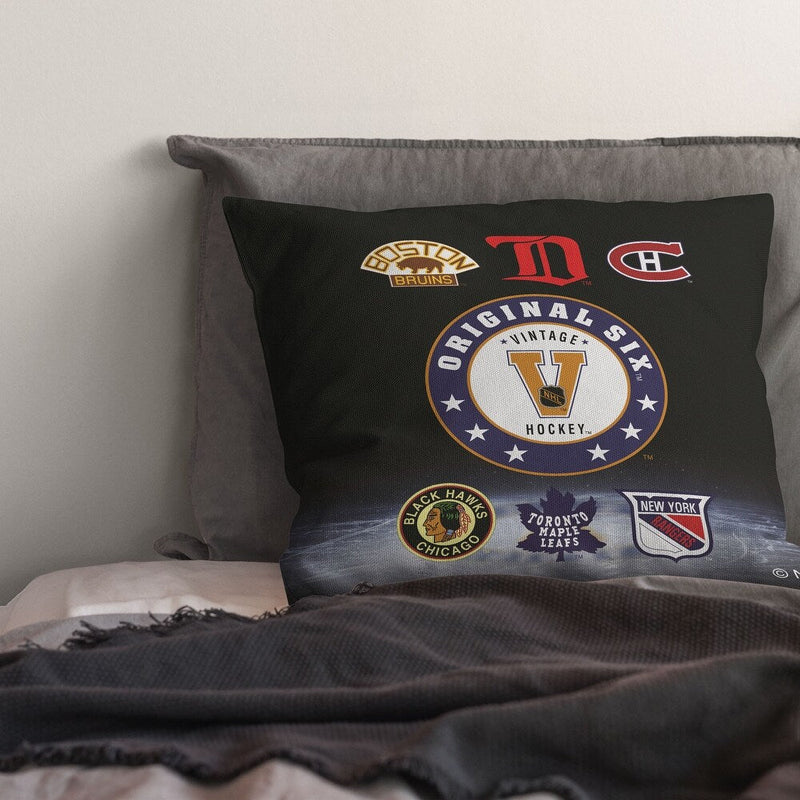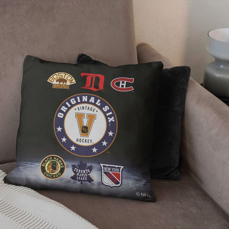 Experience the essence of hockey history with the NHL First Six Soft and Comfortable Decorative Pillow. This pillow is not just an accessory; it's a cozy journey back in time, showcasing the iconic logos of the original six teams that defined the National Hockey League. Add a touch of vintage charm and team pride to your home with the NHL First Six Soft and Comfortable Decorative Pillow, making every moment a celebration of the rich heritage that defines the spirit of the NHL.