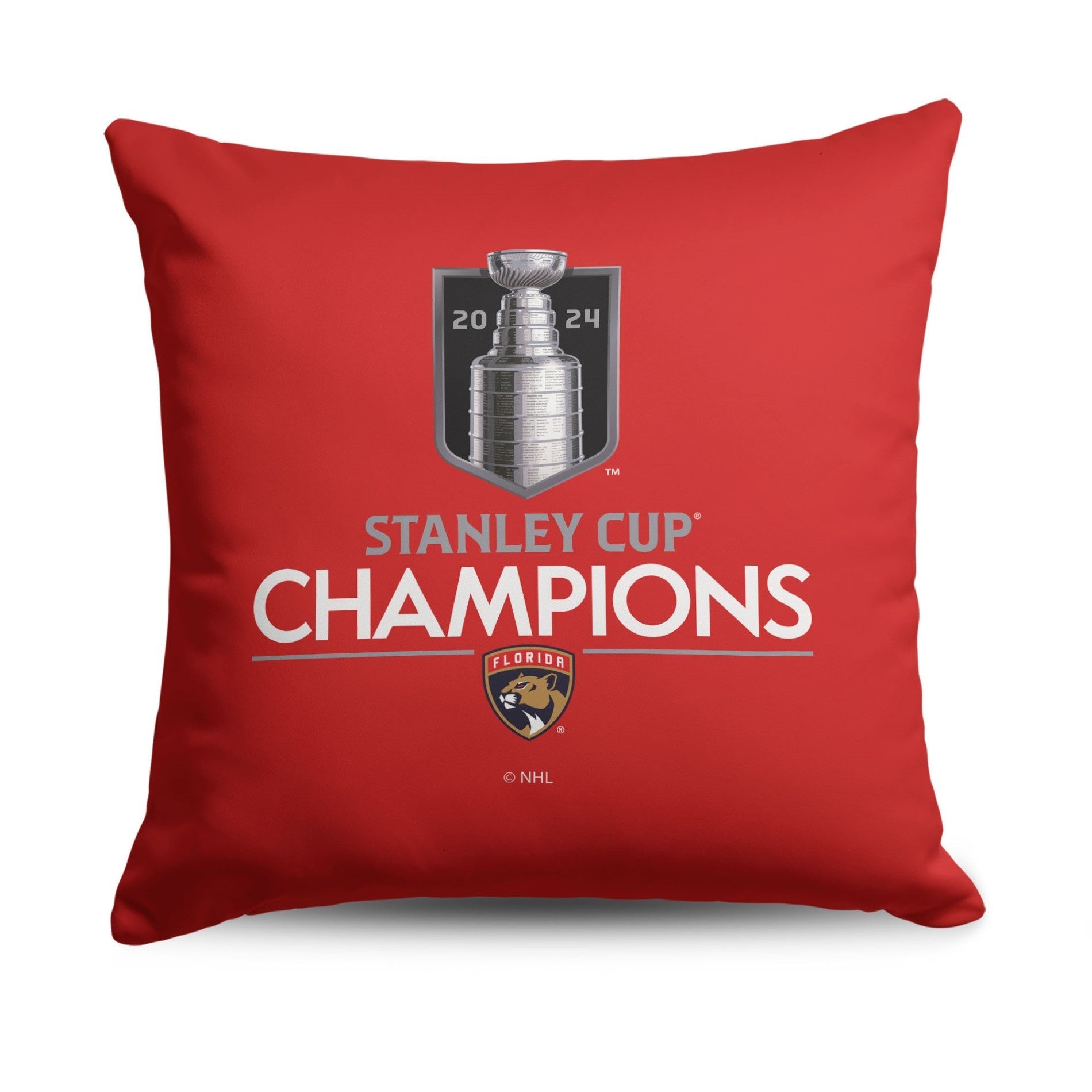 Celebrate your team's epic victory with the 2024 NHL Stanley Cup Champions "Real Deal" Printed Throw Pillow. One side proudly displays your team's logo, while the other showcases the iconic Stanley Cup logo alongside your team's emblem. Both sides are adorned in bold team colors, making it a striking addition to any space. Whether you're decorating your living room, bedroom, or fan cave, its vibrant design will stand out. The high-quality print ensures the colors remain vivid, capturing the thrill of the championship win every time you see it. Perfect for lounging on the couch or adding a cozy touch to your bed, it offers soft support and a reminder of your team's glorious season.