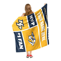 NHL Nashville Predators Colorblock Personalized Silk Touch Sherpa Throw Blanket 50x60 Inches