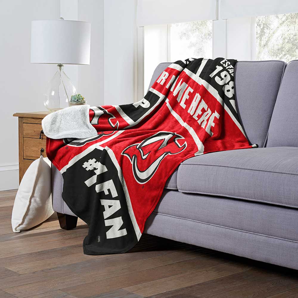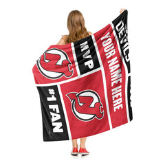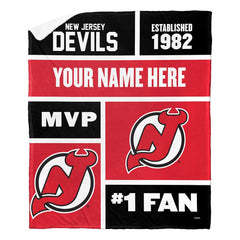 NHL New Jersey Devils Colorblock Personalized Silk Touch Sherpa Throw Blanket 50x60 Inches