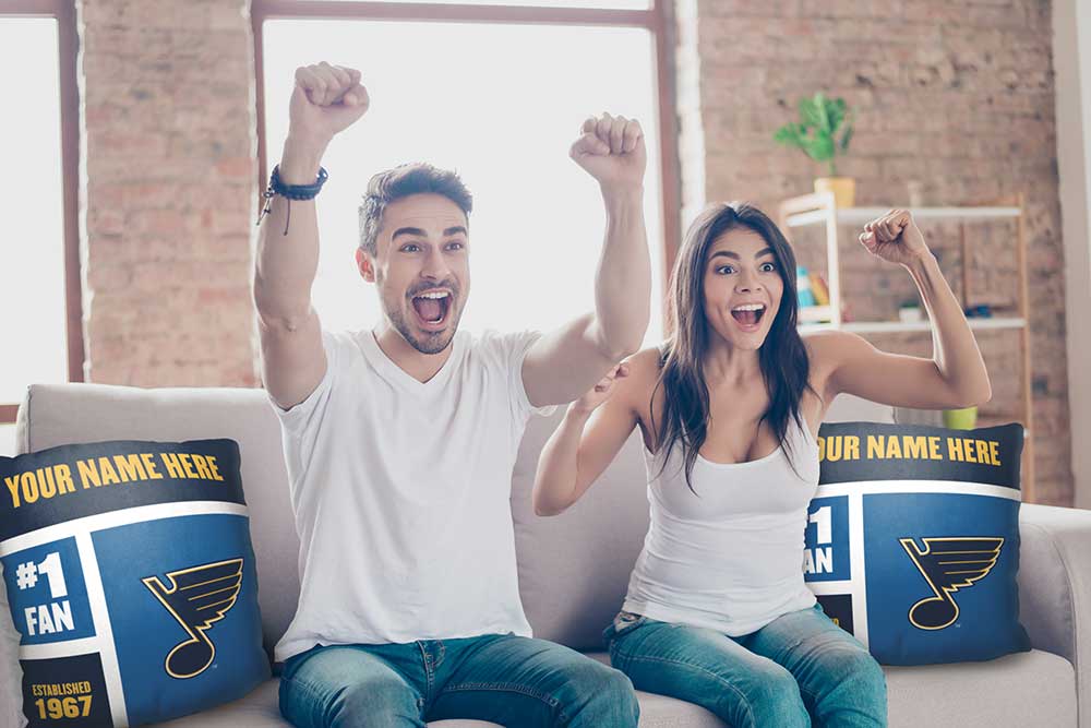 Decorate your couch with an Officially Licensed NHL "Colorblock" Personalized Pillow by TheNorthwest. Proudly show off your favorite hockey team with this soft and comfortable 18"x 18" square pillow that features your personalization in a color block layout above the team logo, established year, and number 1 fan. Give this personalized pillow as a special gift or personalize one for yourself!