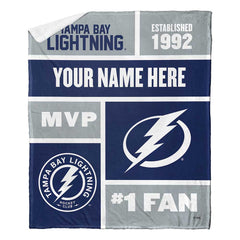 NHL Tampa Bay Lightning Colorblock Personalized Silk Touch Sherpa Throw Blanket 50x60 Inches