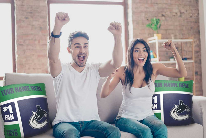 Decorate your couch with an Officially Licensed NHL "Colorblock" Personalized Pillow by TheNorthwest. Proudly show off your favorite hockey team with this soft and comfortable 18"x 18" square pillow that features your personalization in a color block layout above the team logo, established year, and number 1 fan. Give this personalized pillow as a special gift or personalize one for yourself!