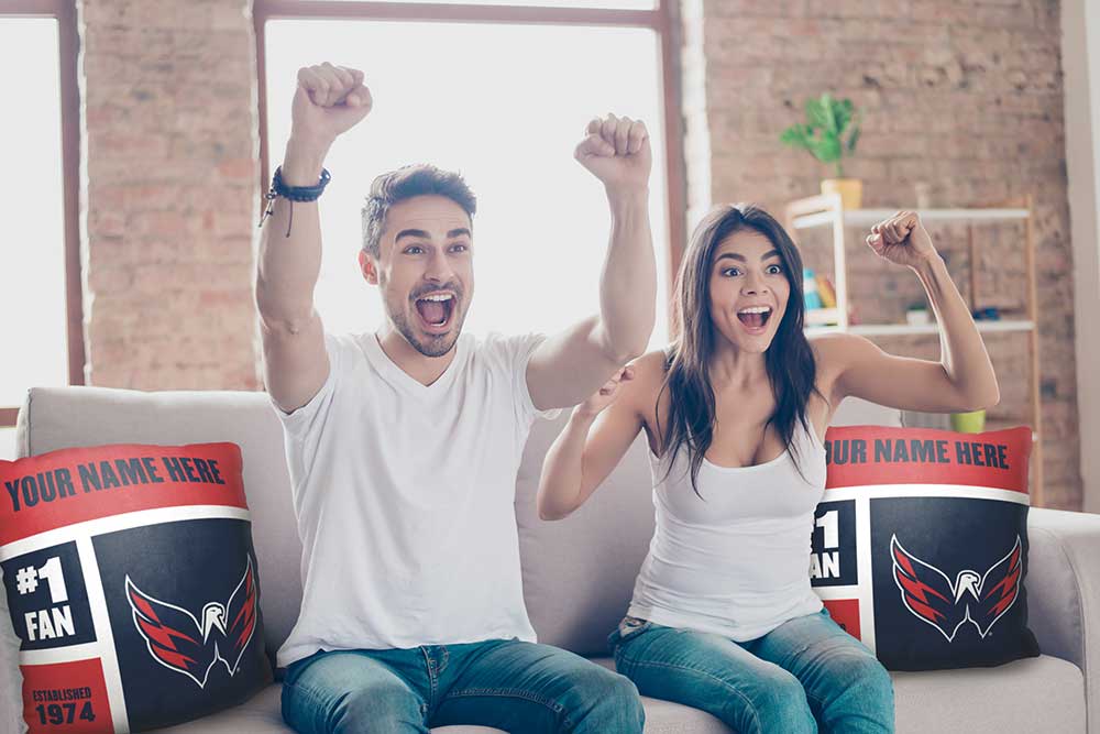 Decorate your couch with an Officially Licensed NHL "Colorblock" Personalized Pillow by TheNorthwest. Proudly show off your favorite hockey team with this soft and comfortable 18"x 18" square pillow that features your personalization in a color block layout above the team logo, established year, and number 1 fan. Give this personalized pillow as a special gift or personalize one for yourself!