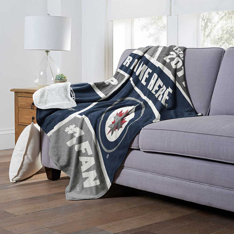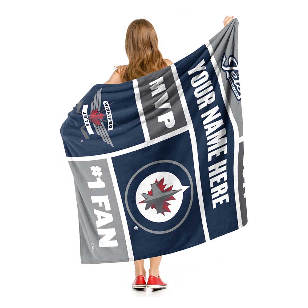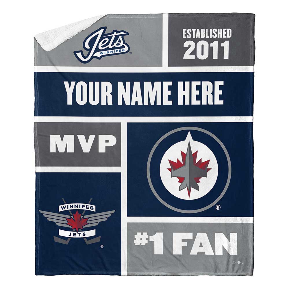 NHL Winnipeg Jets Colorblock Personalized Silk Touch Sherpa Throw Blanket 50x60 Inches