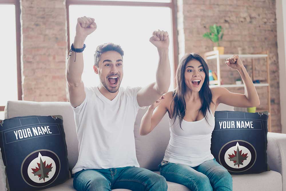 Decorate your couch with an Officially Licensed NHL "Jersey" Personalized Pillow by TheNorthwest. Proudly show off your favorite hockey team with this soft and comfortable 18"x 18" square pillow that features your personalization above the team logo on a sports jersey design. Give this personalized pillow as a special gift or personalize one for yourself!