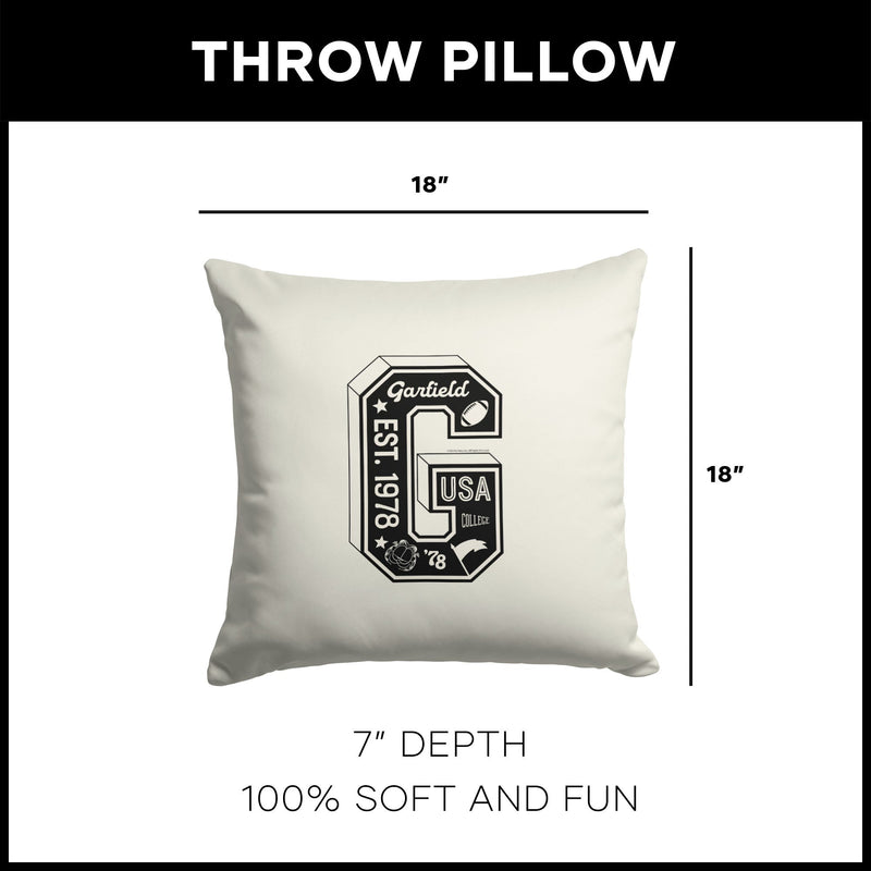 Transform your space with the Nickelodeon Garfield "Est. 1978" Throw Pillow, a playful homage to the beloved lasagna-loving cat who has entertained fans for decades. Featuring a bold varsity letter "G" at its center, this pillow prominently showcases Garfield's legacy while paying tribute to the year he first graced our screens. Its classic design captures the essence of nostalgia, making it a perfect accent for any Garfield enthusiast. Crafted with care, this throw pillow combines comfort and style, featuring high-quality materials that ensure durability and softness. Ideal for adding a touch of whimsy to your couch, bed, or reading nook, it provides just the right amount of support for relaxation during your favorite Garfield comic or show rerun.