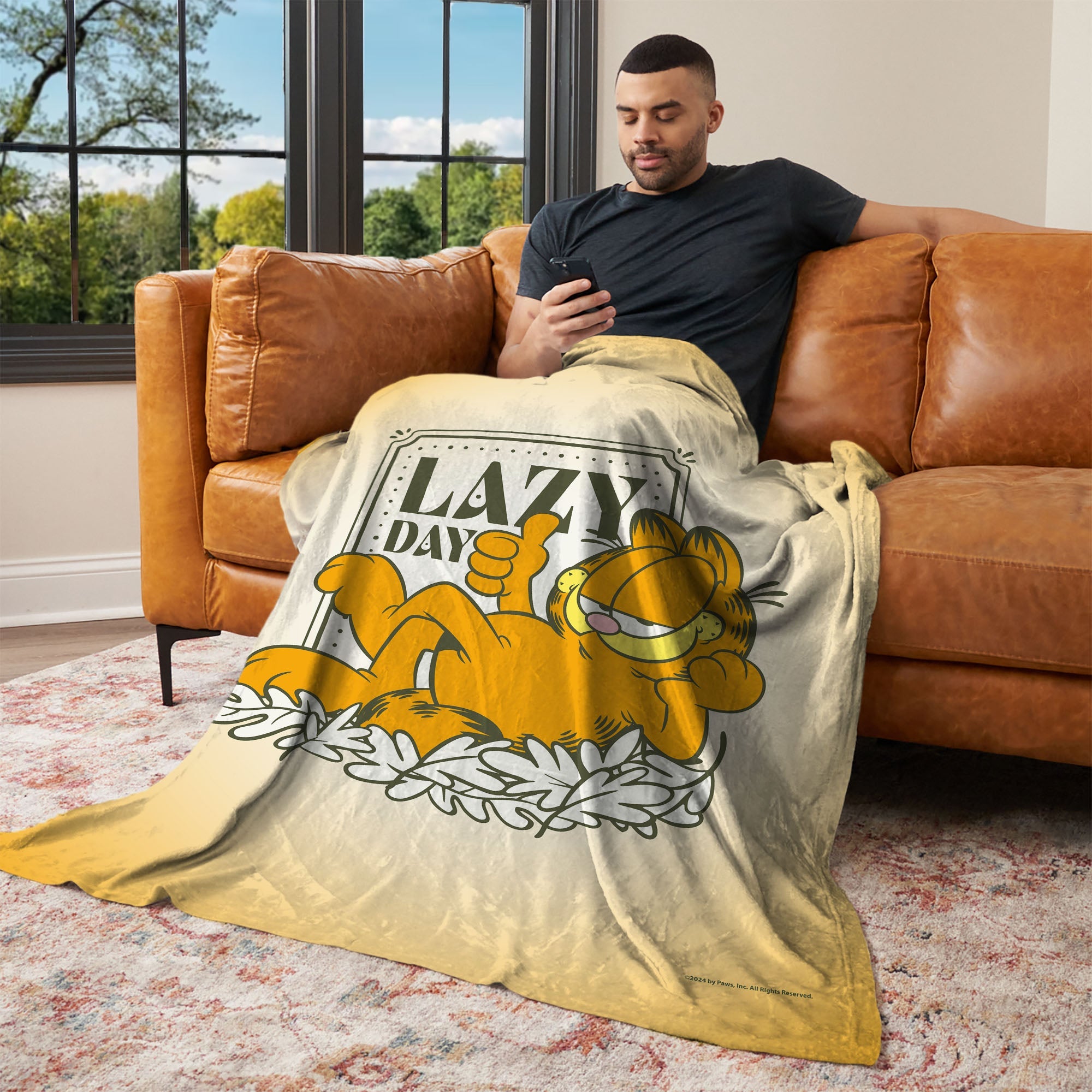 Lazy days are Garfield¡¯s specialty, and this Silk Touch Throw Blanket brings his iconic charm to life. Featuring a cozy image of Garfield stretched out in a pile of colorful leaves, it perfectly captures his knack for making relaxation look effortless. The bold ¡°Lazy Day¡± lettering in the background sets the mood for unwinding. Made with luxurious silk-touch fabric, this blanket is soft, smooth, and lightweight¡ªperfect for adding comfort without feeling heavy. Whether you¡¯re binge-watching your favorite shows or enjoying a quiet afternoon nap, it wraps you in just the right amount of warmth. For fans of Garfield and those who appreciate the art of slowing down, this throw makes a fun and functional addition to your space. Keep it on your couch, bed, or favorite chair to inspire moments of pure relaxation whenever you need them.
