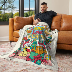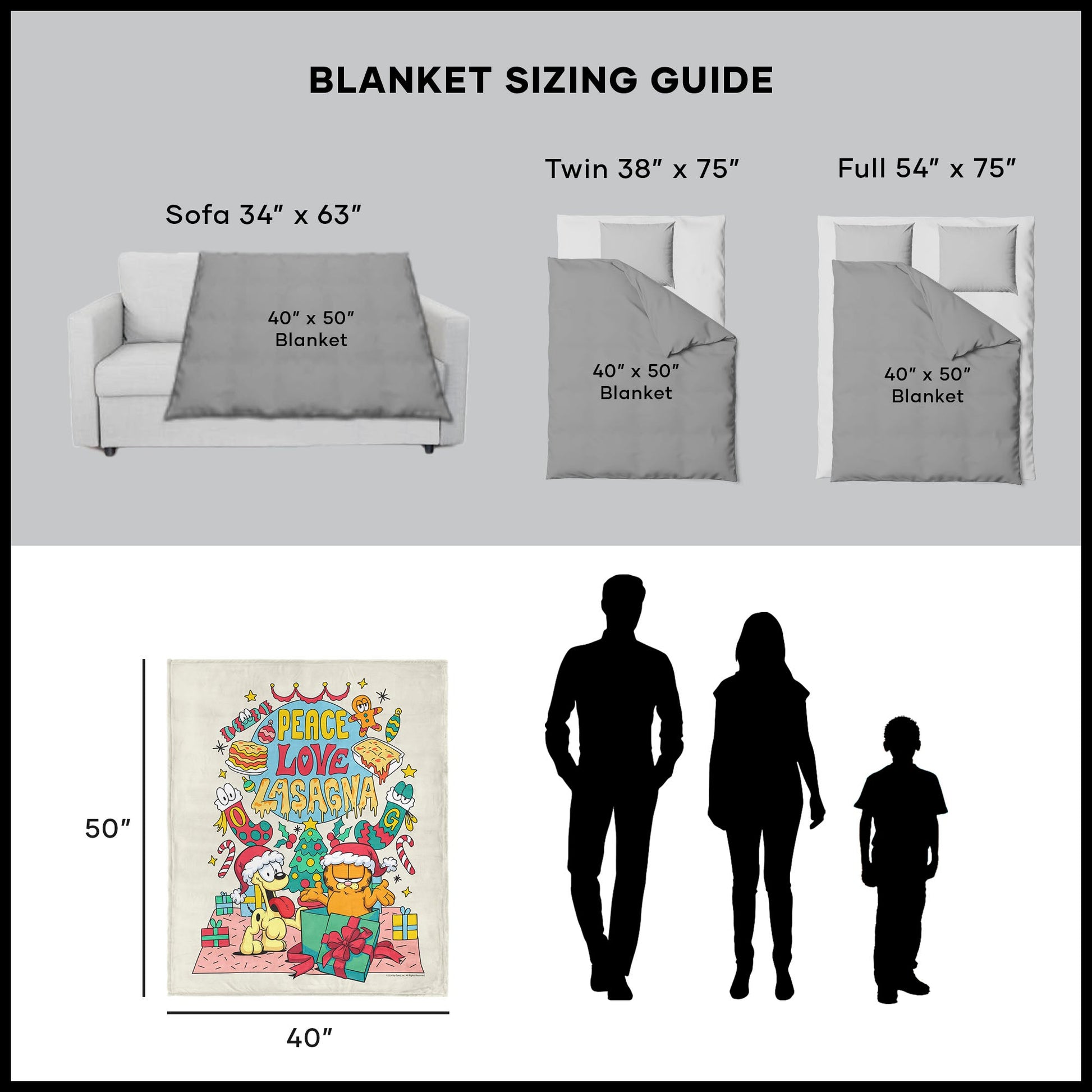 Relax in style with the Nickelodeon Garfield ¡°Peace Love Lasagna¡± Silk Touch Throw Blanket. This festive blanket showcases Garfield and Odie in a delightful holiday scene, complete with a scrumptious plate of lasagna, stockings, wrapped gifts, and a Christmas tree. Garfield's and Odie's goofy charm make this throw a playful addition to any holiday d¨¦cor. Made with a soft Silk Touch fabric, this blanket offers both warmth and comfort during the chilly winter months. The colorful design captures the spirit of the season, blending Garfield's love for lasagna with the joy of holiday traditions. It's perfect for curling up on the couch, adding a touch of humor and festivity to your space. Ideal for Garfield fans or anyone who loves a good laugh with their holiday cheer, this throw is a fun and functional gift. Its cozy feel and vibrant design make it a standout piece for cozy nights or holiday gatherings, combining the best of classic cartoon charm with seasonal fun.
