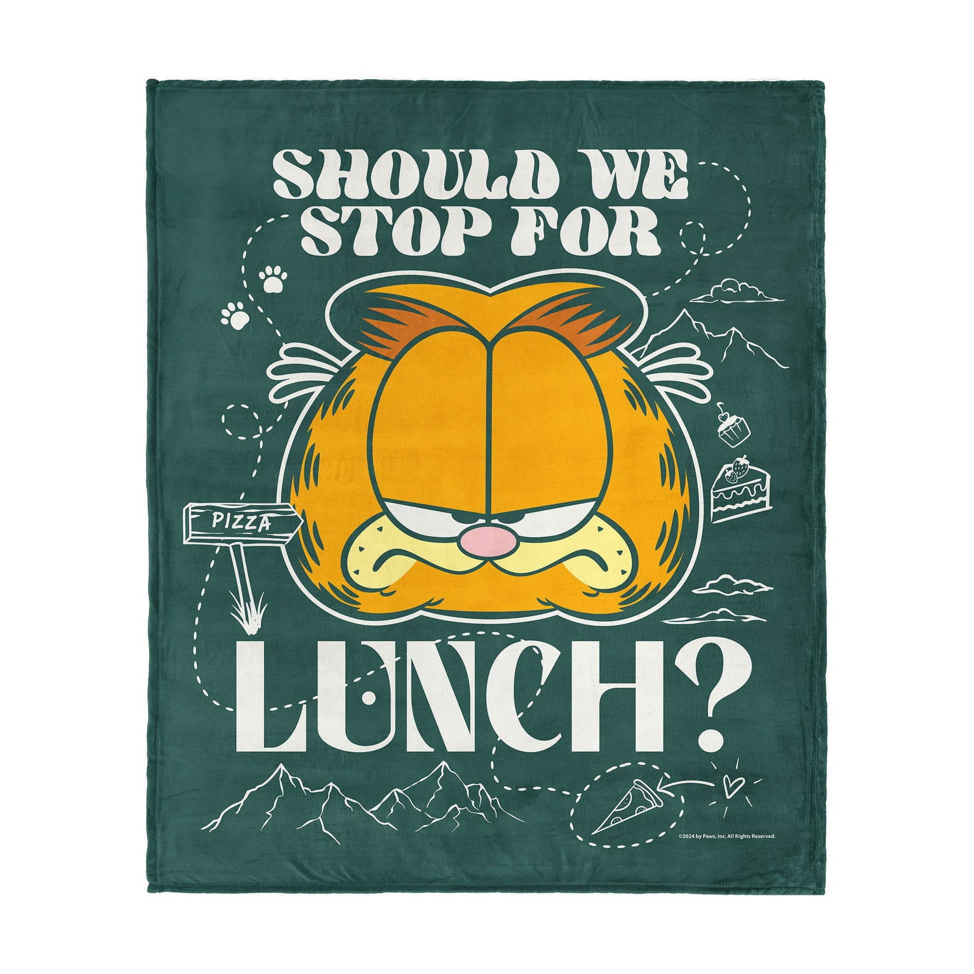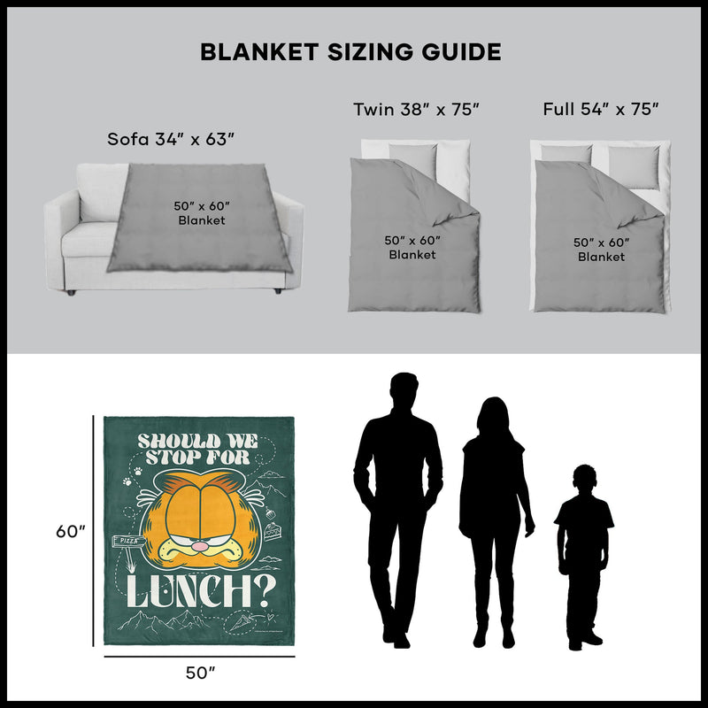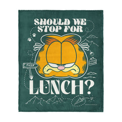 Garfield¡¯s love for food is on full display with this Silk Touch Throw Blanket. Featuring an image of his head paired with the words ¡°Should we stop for lunch?¡± it¡¯s a fun nod to his famously big appetite and laid-back humor. Crafted from ultra-soft silk-touch fabric, this blanket is as comfortable as it is entertaining. Lightweight and smooth to the touch, it¡¯s perfect for cozying up on the couch, layering on your bed, or keeping nearby for a quick afternoon nap. Ideal for Garfield fans and foodies alike, this throw adds a touch of personality to any space. Let Garfield¡¯s signature wit remind you to take a break, enjoy the moment, and maybe even grab a snack.