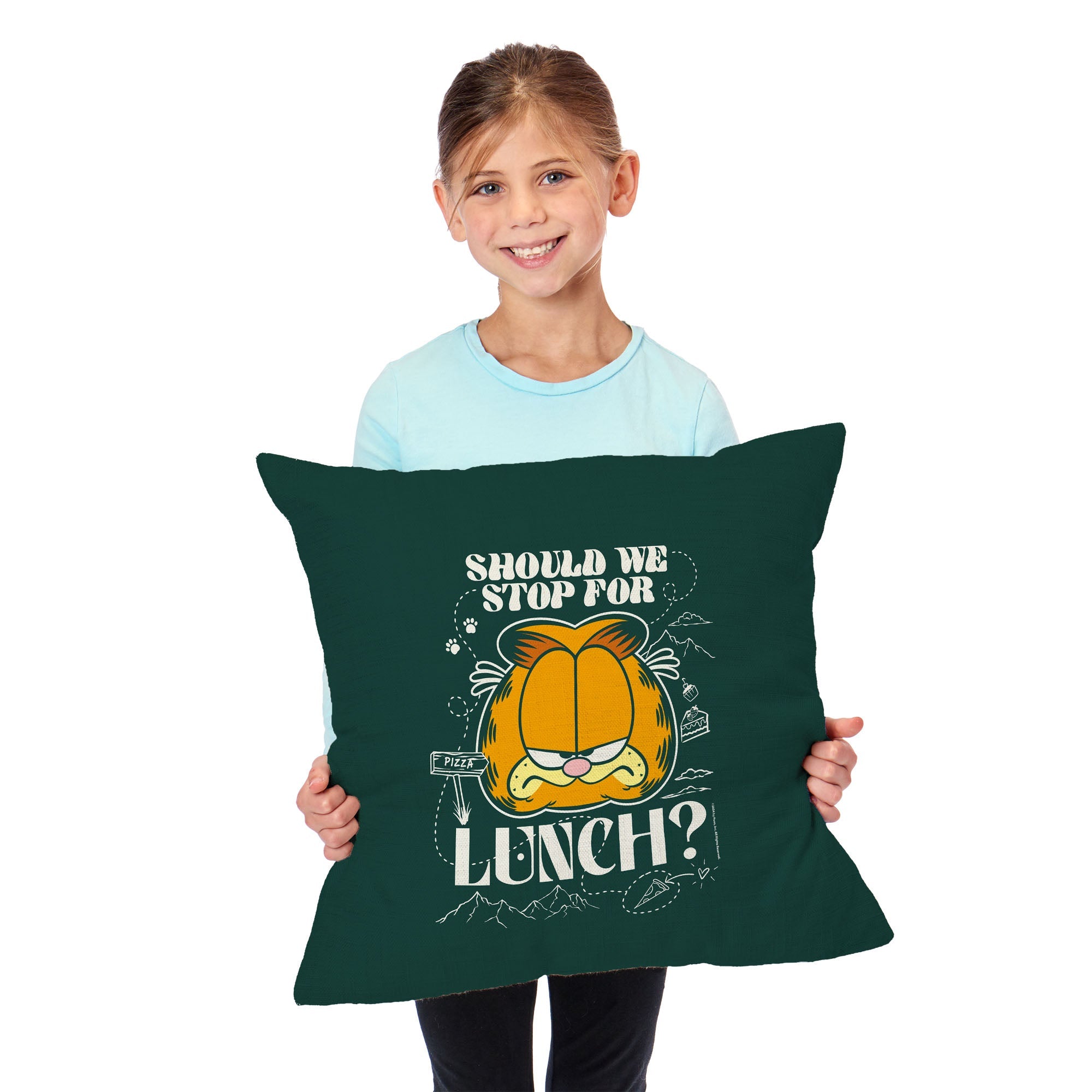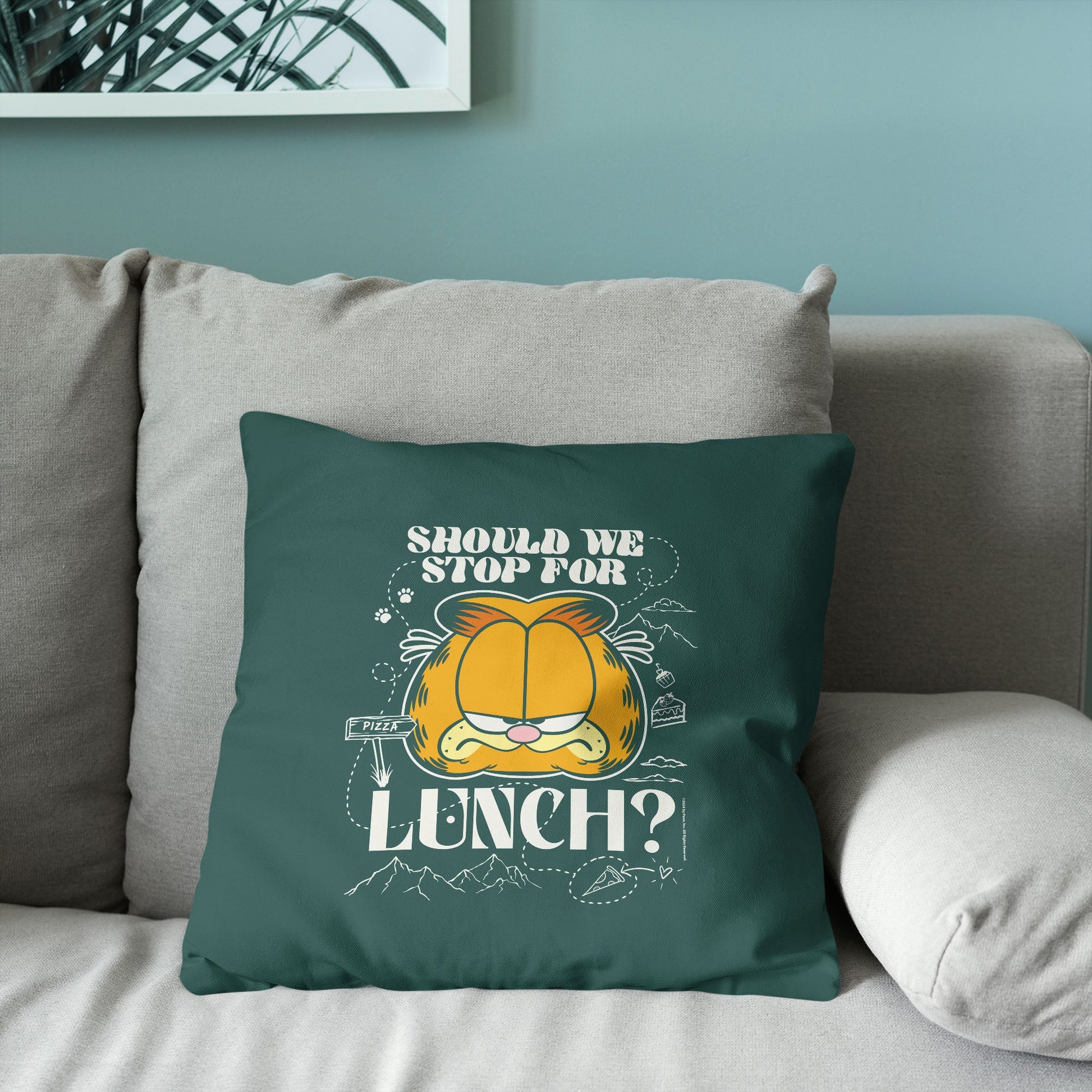 Garfield¡¯s love for food is front and center on this throw pillow. Featuring his iconic face, paired with the humorous words ¡°Should we stop for lunch?¡±, this pillow adds a playful touch to any space. His familiar, slightly mischievous expression makes it clear that he¡¯s always thinking about food. Perfect for fans of the classic cartoon, this pillow brings a lighthearted, relatable vibe to your living room, bedroom, or kitchen. Garfield¡¯s personality shines through, making it a great conversation starter and a fun addition to any decor. Whether you¡¯re lounging or simply in need of a little humor, this pillow offers a quirky reminder to enjoy life¡¯s simple pleasures. It¡¯s the perfect blend of style, wit, and Garfield¡¯s unforgettable charm.