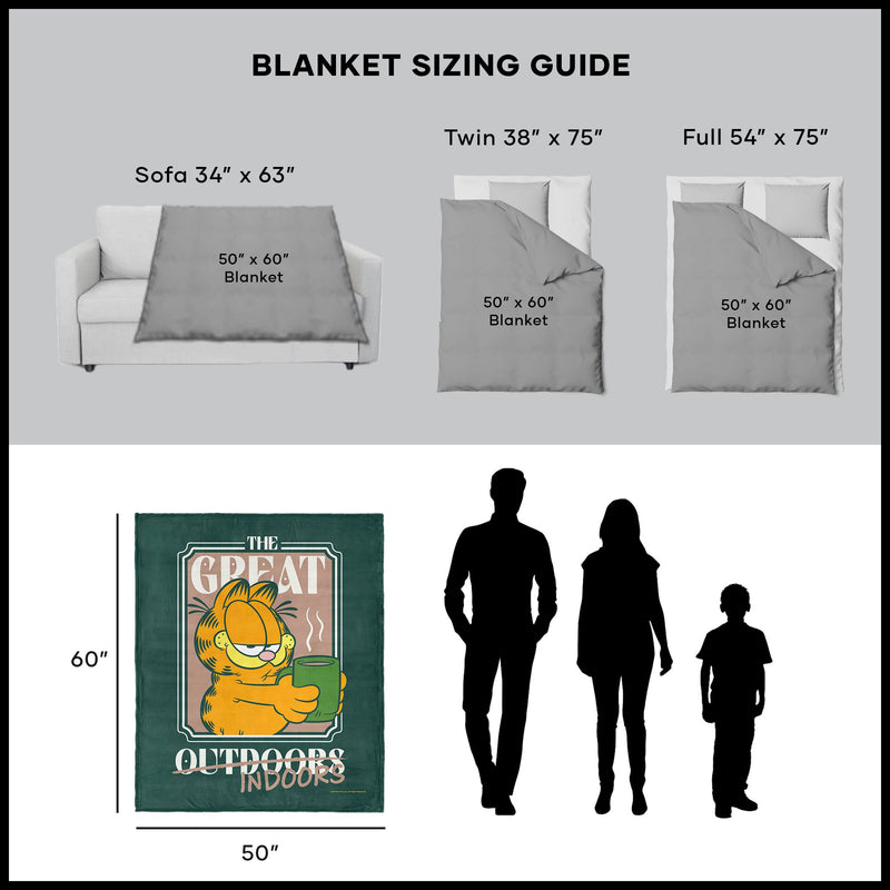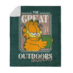 Garfield knows where the real adventure is ¨C inside, with a cup of hot chocolate. This Silk Touch Sherpa Throw Blanket captures his witty outlook with an image of Garfield holding his drink, paired with the words ¡°The Great Outdoors¡± humorously crossed out and replaced with ¡°Indoors¡±. Made from soft and luxurious silk-touch fabric, this blanket offers lightweight warmth and a smooth feel that¡¯s perfect for staying cozy. Whether you¡¯re curling up with a book, binge-watching your favorite shows, or simply enjoying a lazy day at home, it¡¯s a fun and functional addition to your comfort zone. Perfect for Garfield fans and lovers of indoor relaxation, this throw brings warmth and humor to any space. Let Garfield remind you that the best adventures happen where it¡¯s warm and comfy¡ªwith snacks close by.