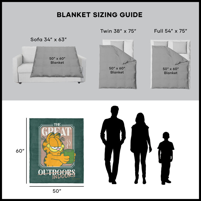 Garfield knows where the real adventure is ¨C inside, with a cup of hot chocolate. This Silk Touch Throw Blanket captures his witty outlook with an image of Garfield holding his drink, paired with the words ¡°The Great Outdoors¡± humorously crossed out and replaced with ¡°Indoors¡±. Made from soft and luxurious silk-touch fabric, this blanket offers lightweight warmth and a smooth feel that¡¯s perfect for staying cozy. Whether you¡¯re curling up with a book, binge-watching your favorite shows, or simply enjoying a lazy day at home, it¡¯s a fun and functional addition to your comfort zone. Perfect for Garfield fans and lovers of indoor relaxation, this throw brings warmth and humor to any space. Let Garfield remind you that the best adventures happen where it¡¯s warm and comfy¡ªwith snacks close by.