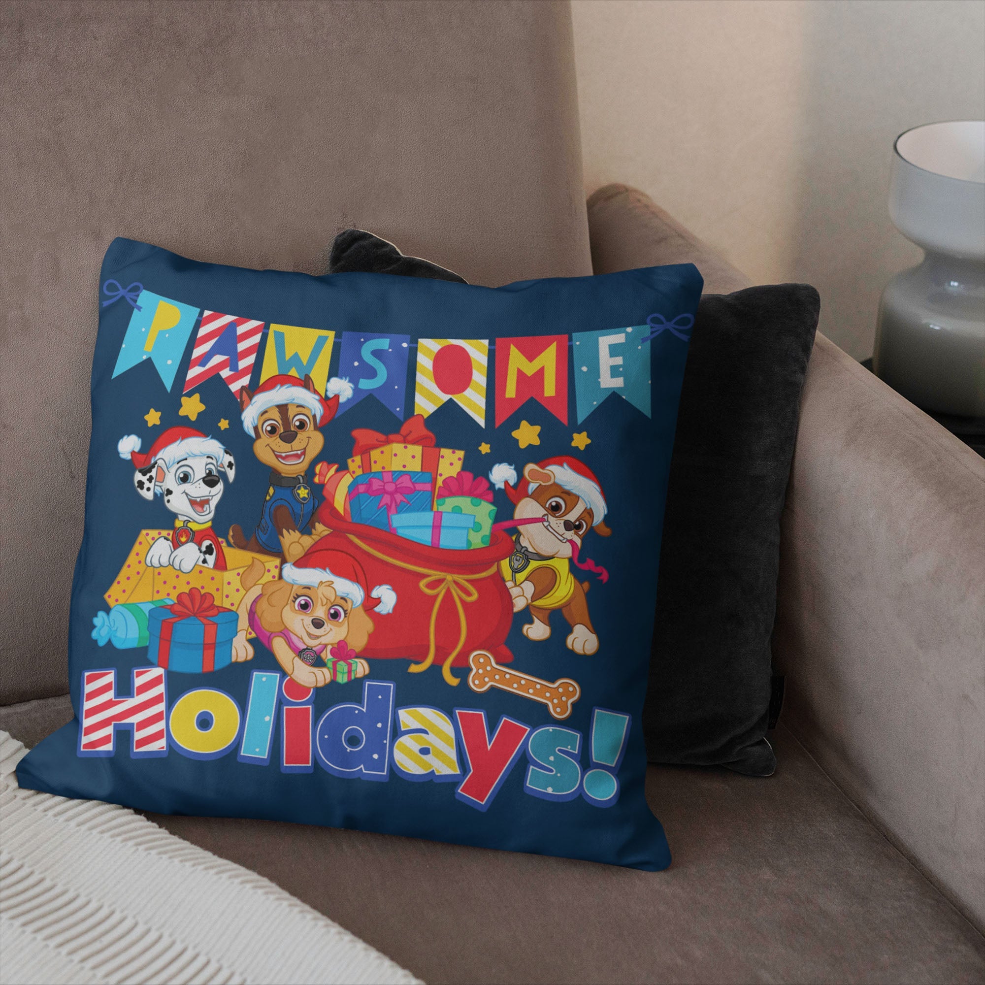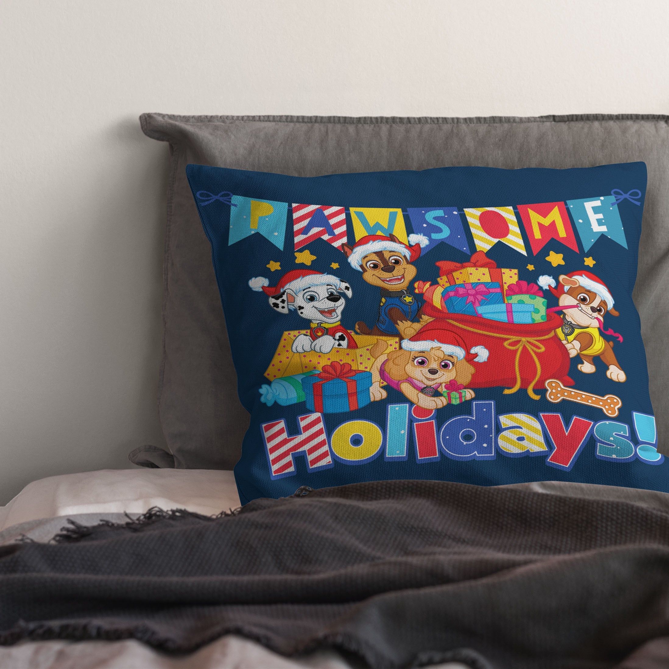 Unleash the paw-tastic vibes into your home with this Nickelodeon Paw Patrol "Pawsome Holidays " Pillow. Add a dash of animated fun to your living space, making it a go-to companion for lounging, napping, or simply enjoying some quality downtime. A Comfy ticket to the world of playful pups and cuddly comfort.