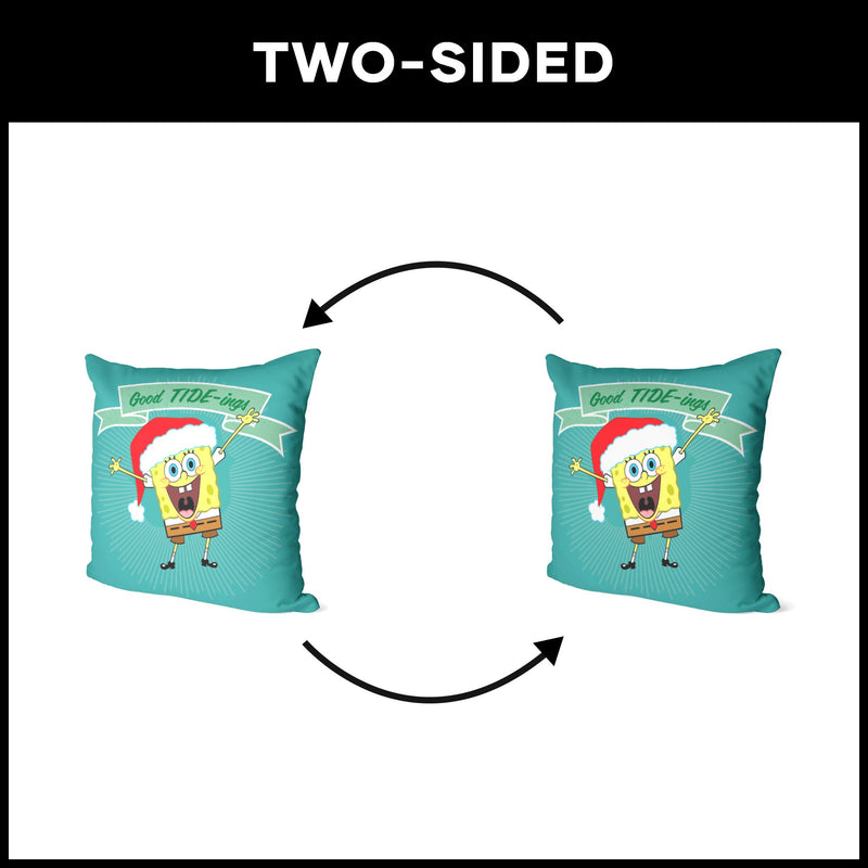 Dive deep into the whimsical world of Bikini Bottom with our SpongeBob SquarePants "Good Tide-ings" Pillow ¨C the comfiest ticket to cartoon bliss! Whether you're a kid-at-heart or a full-fledged SpongeBob aficionado, let this pillow transport you to a world of carefree laughter and comfort. Immerse yourself in the goofy charm of SpongeBob and his pals.
