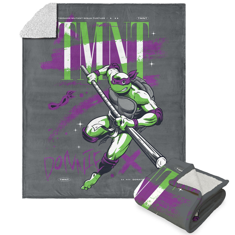 Step into the world of the smartest turtle in the sewers with the Teenage Mutant Ninja Turtles ¡°Donnie TMNT¡± Silk Touch Sherpa Throw Blanket! This bold design showcases Donatello in a fierce fighting stance, ready to take on any challenge with his signature bo staff. With ¡°TMNT¡± proudly displayed in the background, this blanket captures the spirit of the tech-savvy hero, making it a must-have for any Donnie fan. Whether you¡¯re deep into a marathon of TMNT episodes or just chilling after a day of your own ninja adventures, this blanket wraps you up in warmth and comfort. The sherpa lining adds an extra layer of coziness that¡¯s perfect for those moments when you just want to relax and unwind.
