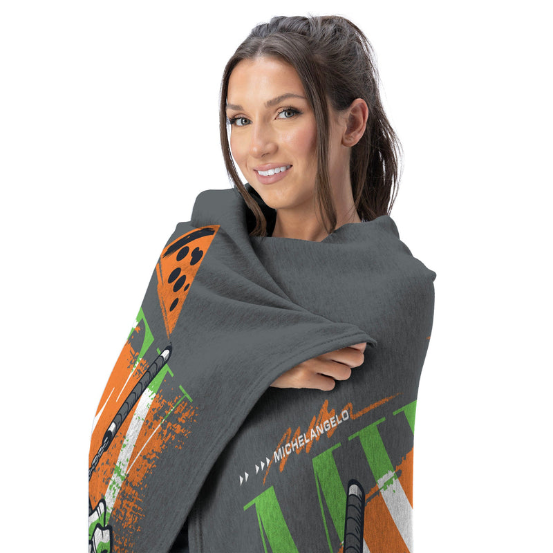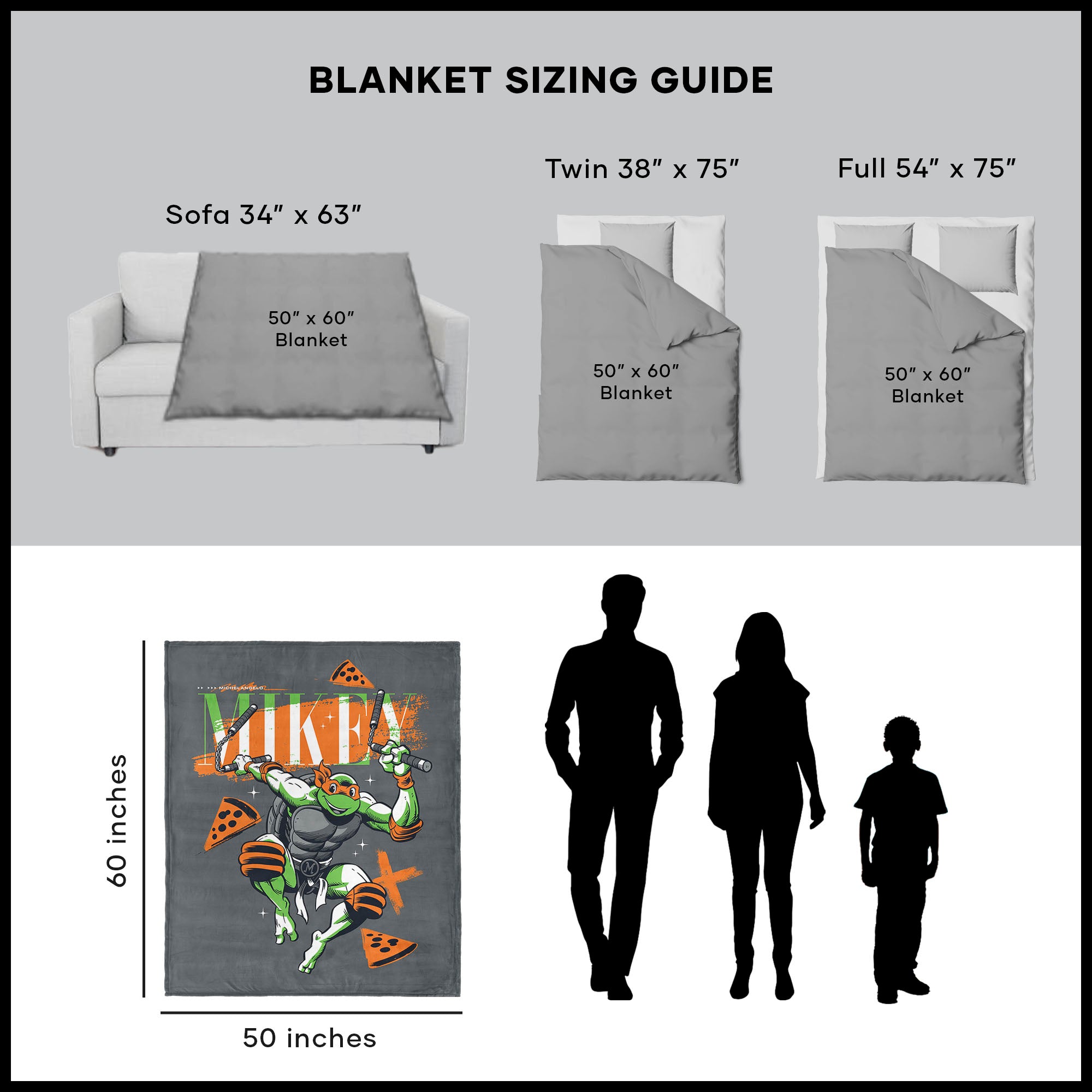 Bring the party to your space with the Teenage Mutant Ninja Turtles ¡°Mikey TMNT¡± Silk Touch Throw Blanket! This awesome design features Michelangelo in his classic fighting stance, ready to take on any foe¡ªor just snag the nearest slice of pizza! With his name ¡°MIKEY¡± emblazoned in the background and pizza slices scattered around, this blanket is a fun tribute to the most easygoing, pizza-loving turtle in the crew. Perfect for chilling out after a long day of saving the city, this throw will keep you warm whether you¡¯re kicking back with some TMNT reruns or dreaming of your next pizza feast. The sherpa lining adds a cozy touch, making it the ultimate snuggle buddy.