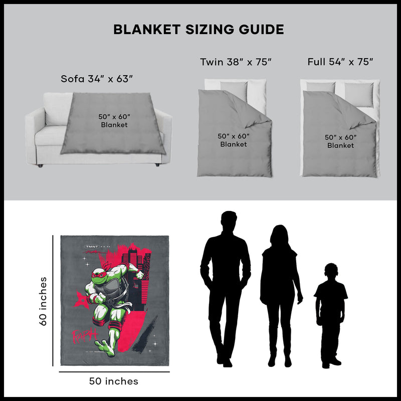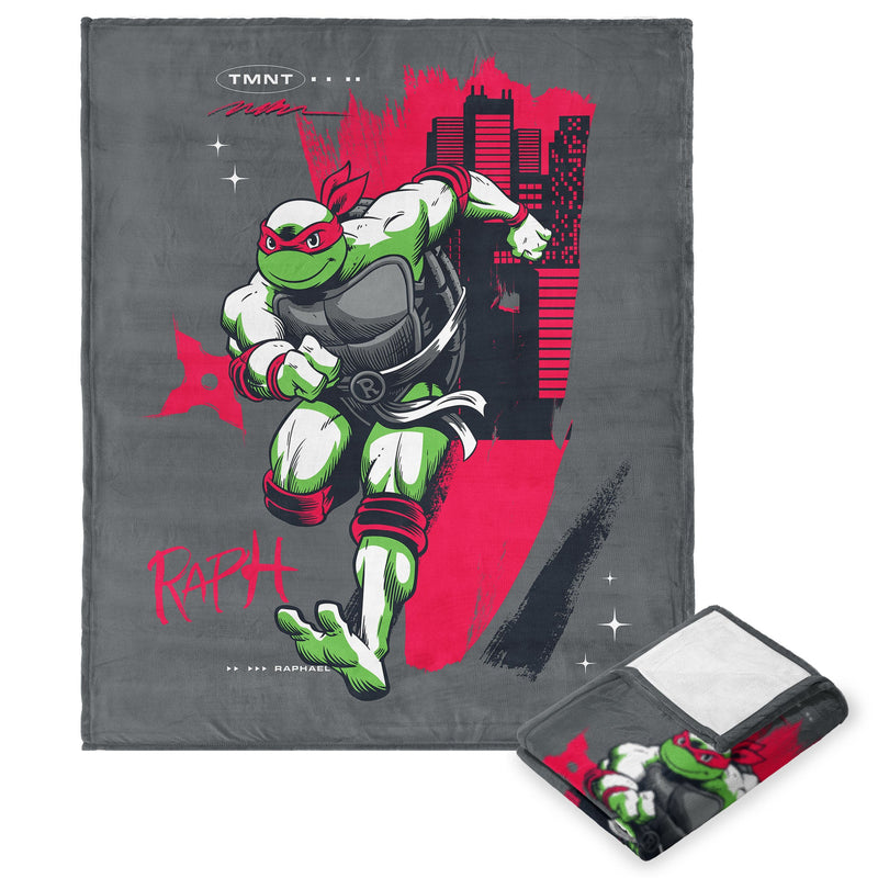 Feel the power of the toughest turtle in town with the Teenage Mutant Ninja Turtles ¡°Raph TMNT¡± Silk Touch Throw Blanket! This striking design captures Raphael in action, racing through the city with his trademark sais in hand and the skyline behind him. Raph¡¯s intense, no-nonsense vibe leaps off the blanket, making it the perfect pick for fans who love his fearless attitude. The sherpa lining adds an extra layer of warmth, making it your go-to throw whether you¡¯re kicking back on the couch or gearing up for a TMNT movie marathon. Whether you¡¯re getting ready to chill or just want to show off your love for the boldest turtle in the team, the ¡°Raph TMNT¡± throw blanket has got you covered.