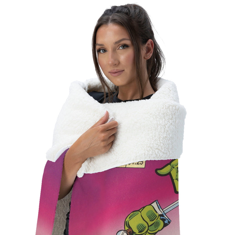 Dive into the epic world of the Teenage Mutant Ninja Turtles with the ¡°TMNT Comic¡± Silk Touch Sherpa Throw Blanket! This throw showcases the turtles captured in dynamic action poses straight from a classic comic book cover. With all four heroes¡ªLeonardo, Michelangelo, Donatello, and Raphael¡ªleaping into the fray, this blanket is a must-have for any TMNT fan who loves that original comic book vibe. The sherpa lining adds an extra layer of snugness, making this throw as comforting as your favorite TMNT comic. Bring a piece of TMNT history to your space and stay warm while you dream up your next adventure.