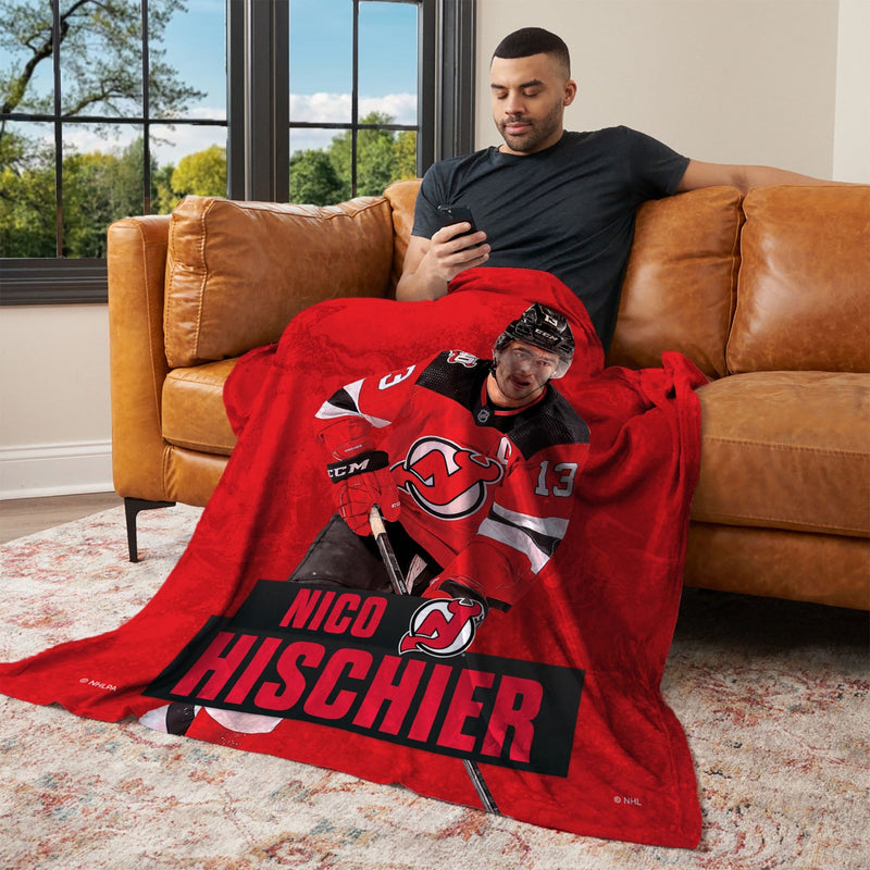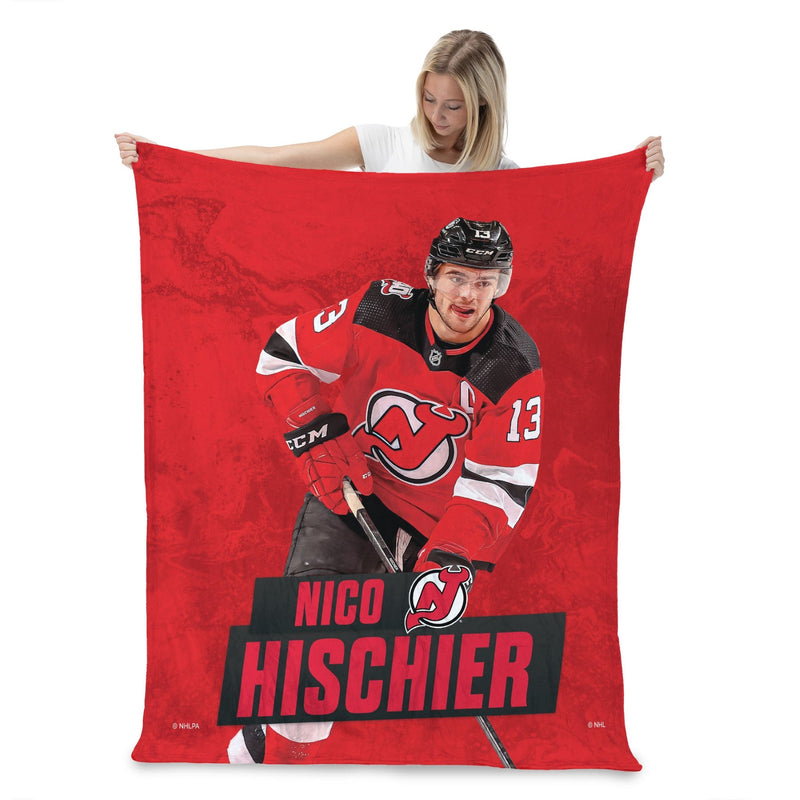 NHL New Jersey Devils Nico Hischier Player Silk Touch Throw Blanket 50x60 Inches