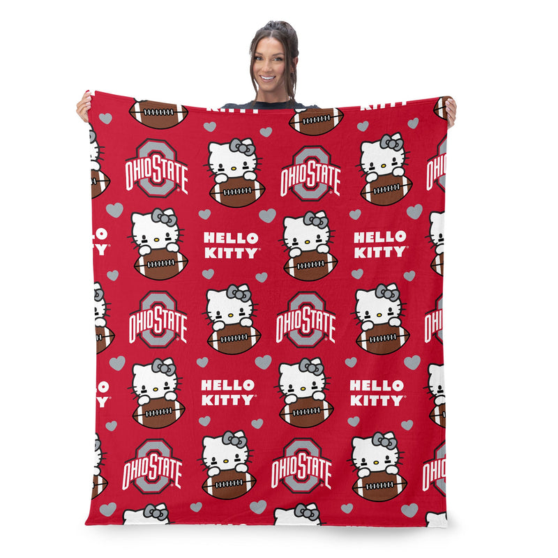 Ohio State Buckeyes Football Ready Hello Kitty Cloud Throw Blanket 60x70 inches
