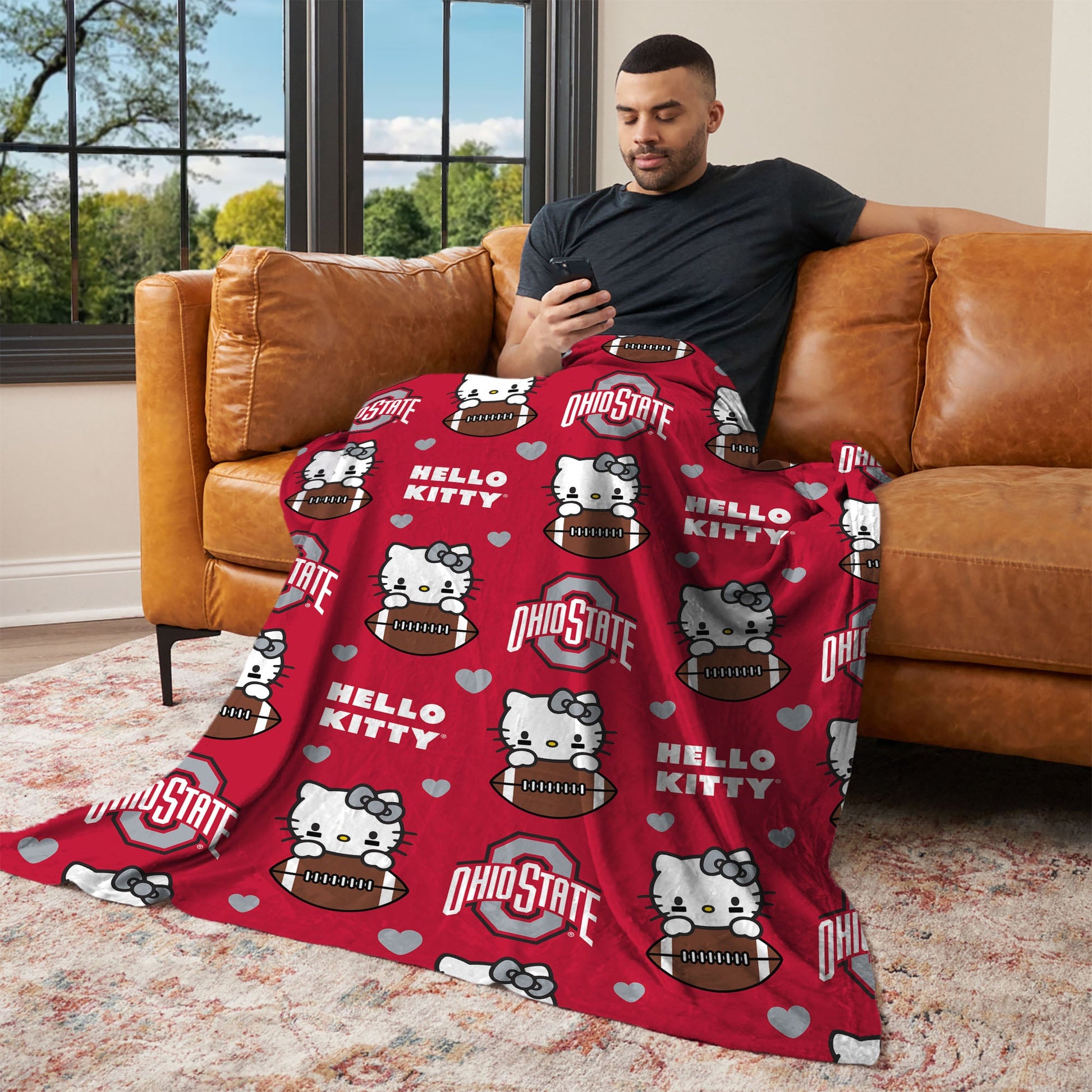 Get game-day ready with a playful mix of spirit and softness. Featuring a repeating pattern of Hello Kitty holding a football alongside your favorite college team¡¯s official logo, this officially licensed Cloud Throw Blanket delivers standout style with a fun twist. Made with ultra-soft fabric, it¡¯s lightweight, breathable, and perfect for lounging, layering, or gifting. Perfect for tailgate naps, movie marathons, or curling up during halftime, the cloud-soft texture keeps you comfortable no matter the season. Hello Kitty fans and college sports lovers alike will appreciate the whimsical design and team pride woven into every inch. Whether it¡¯s for a dorm, couch, or game room, this blanket adds a bold and cozy touch to any space. Wrap up in personality, plushness, and your favorite NCAA team.