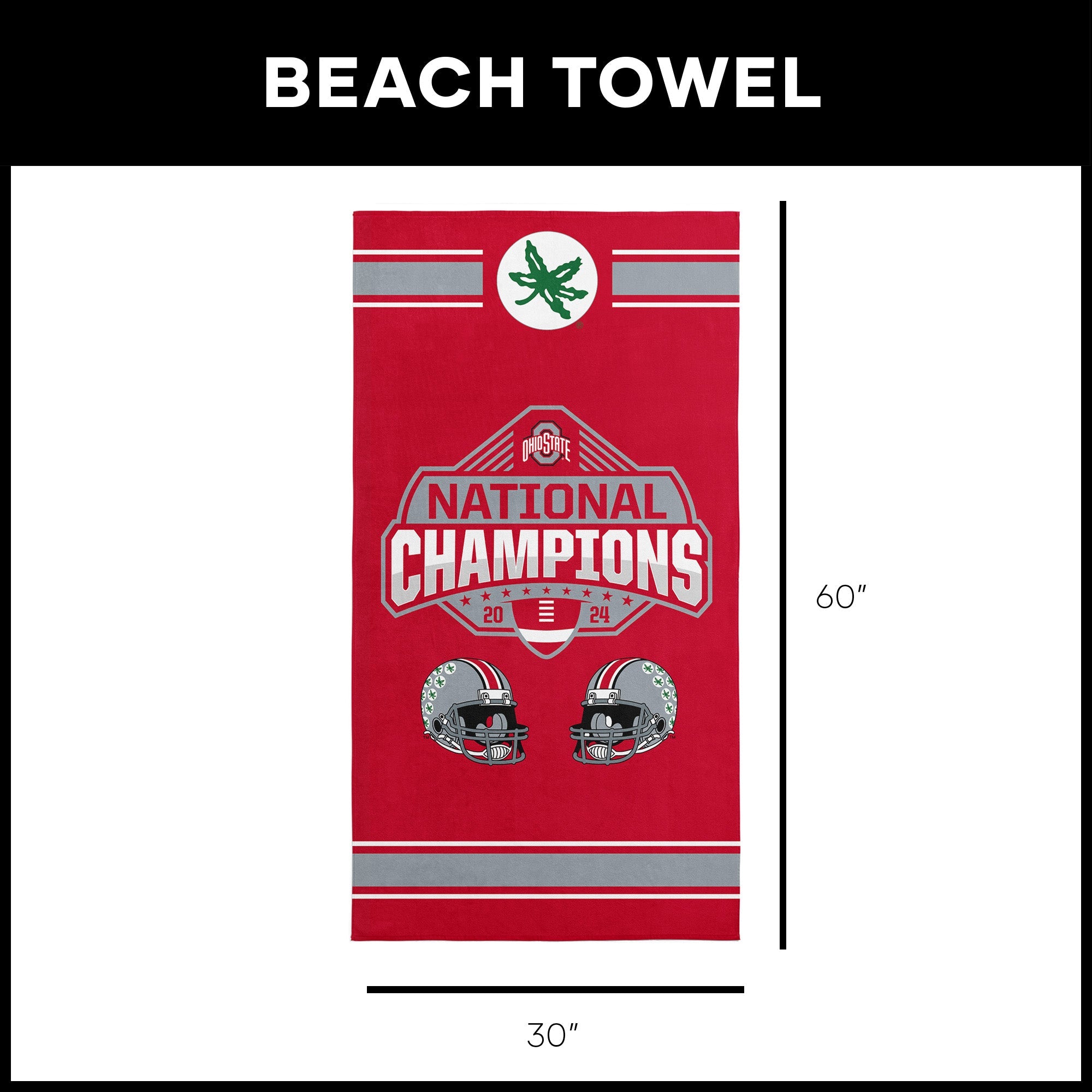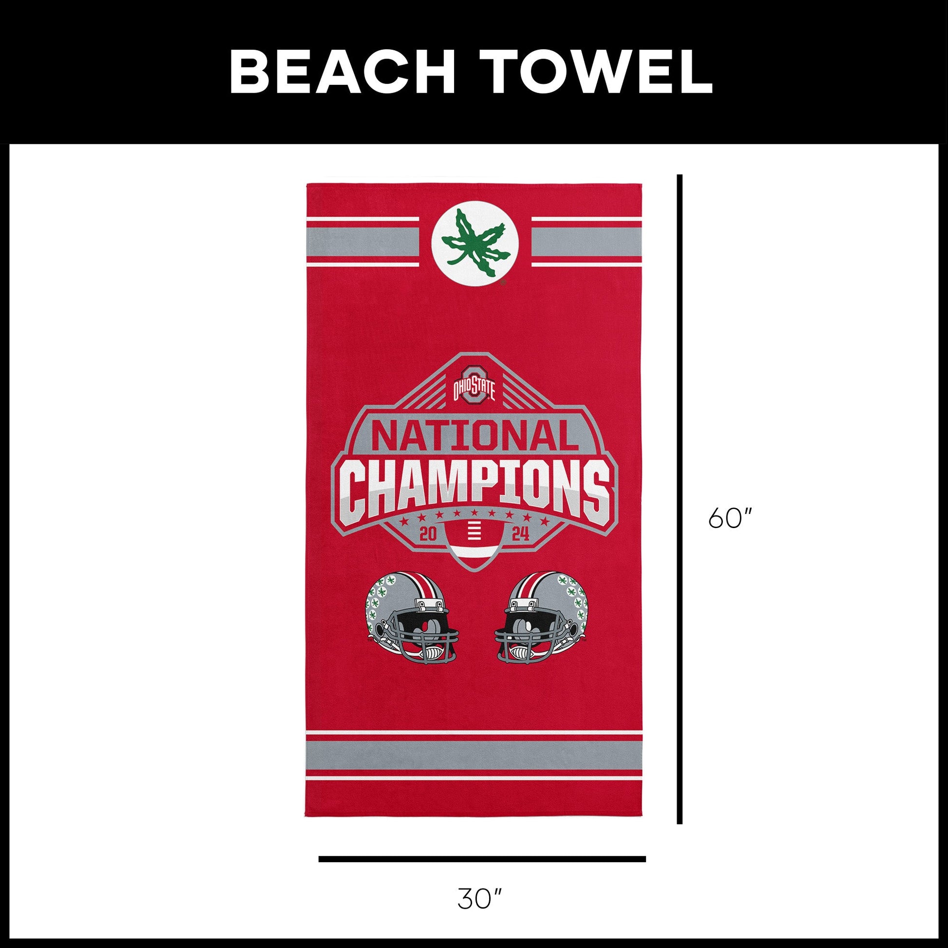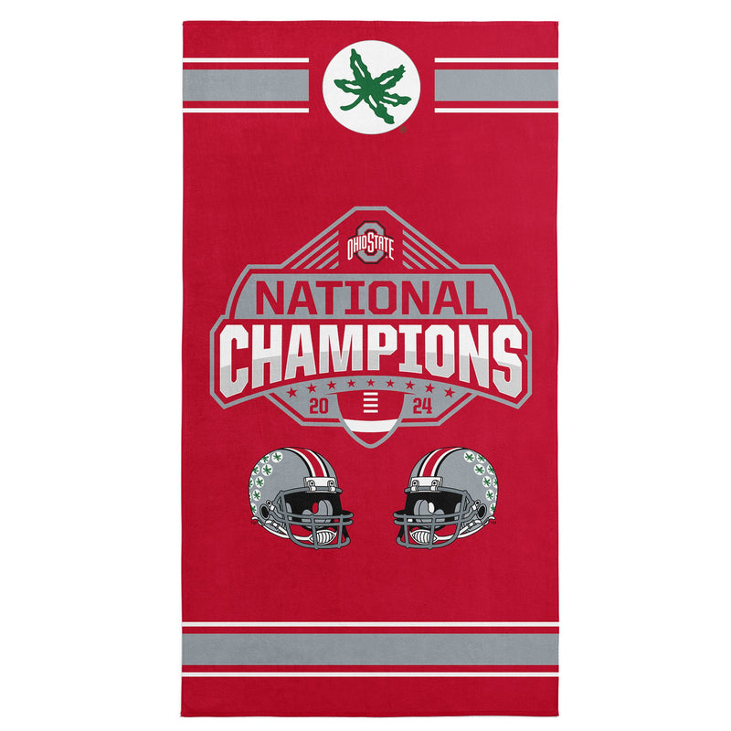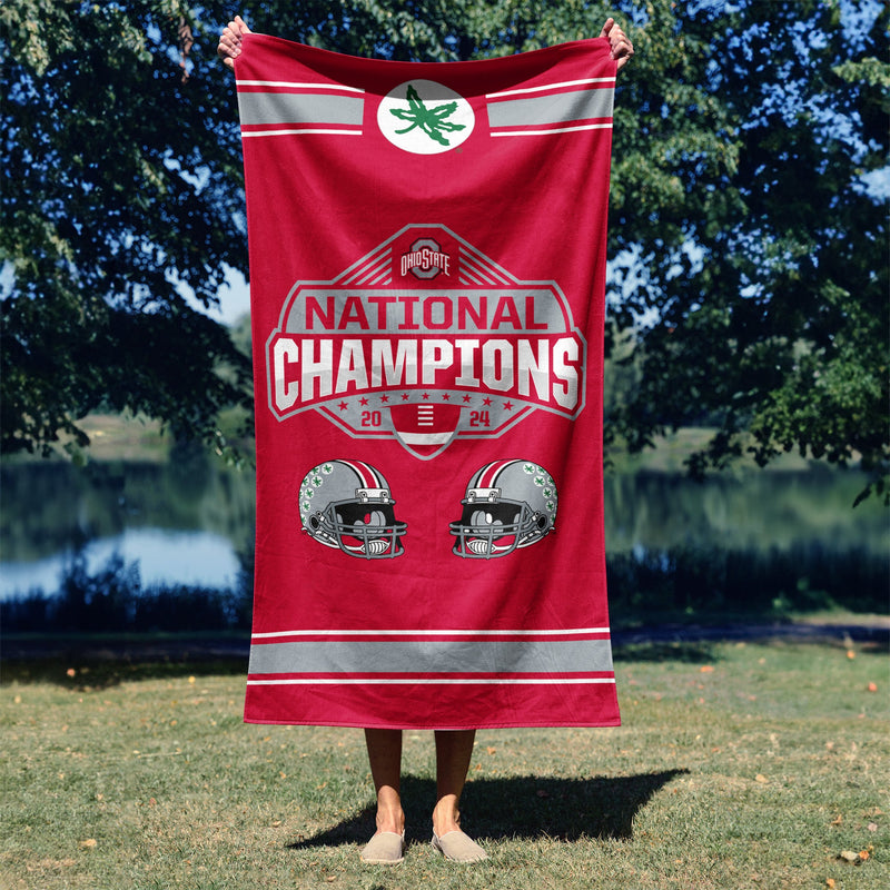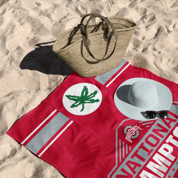Show off your Ohio State pride with the 2024 FBC ¡°Parallel¡± Beach Towel. Featuring a bold National Champions graphic, two detailed OSU football helmets, and the iconic Buckeye logo, this towel is a striking tribute to an unforgettable season. Designed in vibrant team colors, it¡¯s the perfect way to showcase your loyalty. Made from soft, absorbent fabric, this towel is both functional and stylish. Its generous size offers plenty of room for lounging by the pool or stretching out on the sand. The high-quality material ensures comfort while standing up to repeated use, making it a reliable companion for sunny days. Whether you¡¯re at the beach, pool, or a backyard gathering, this towel is a standout addition to your collection. Its bold design and durable construction make it a must-have for any Buckeye fan who wants to make a statement and share their team pride.