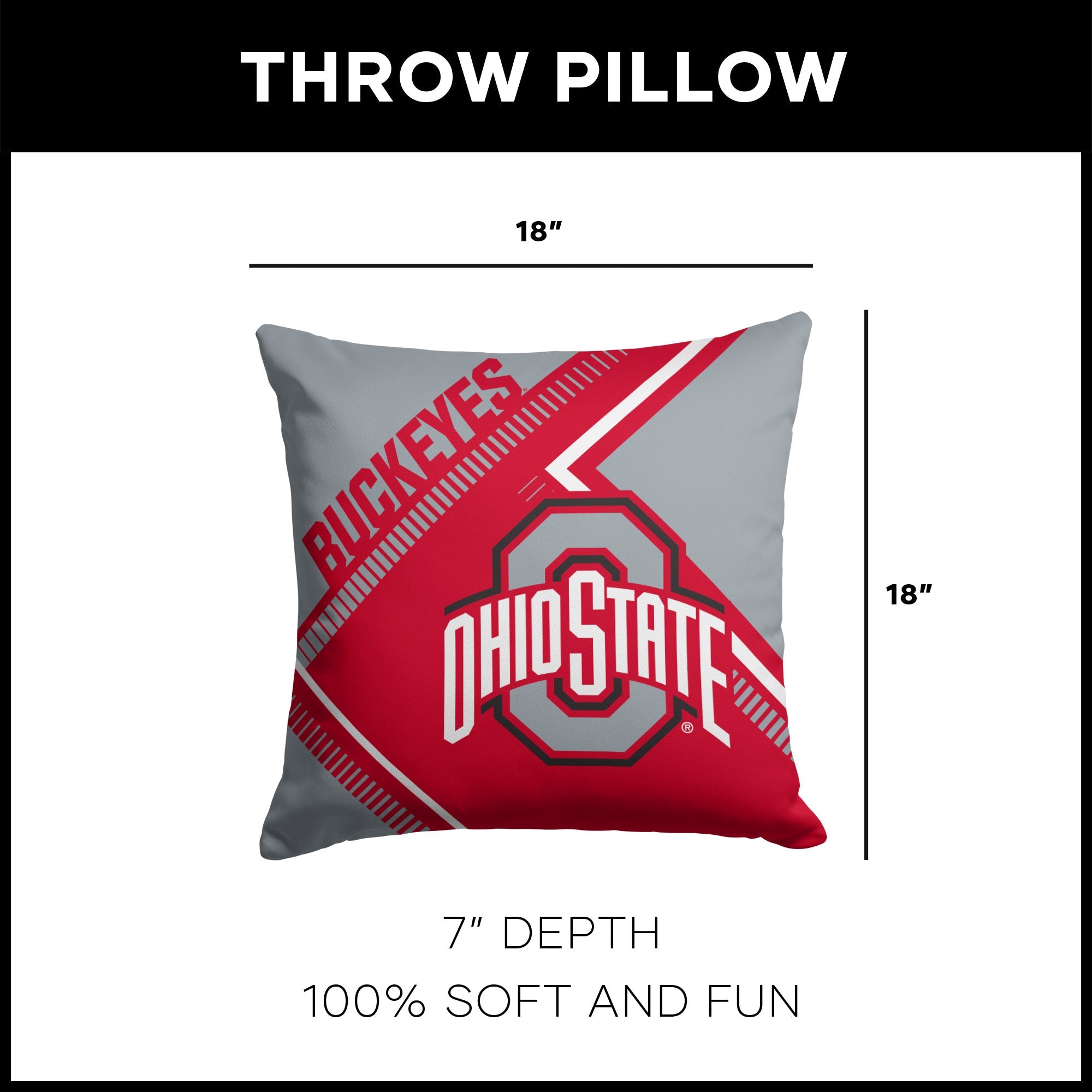Ohio State Buckeyes NCAA Pulsewave Throw Pillow 18X18 Inches