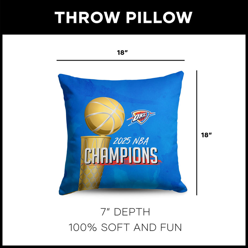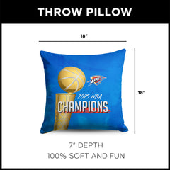 ? One side features the team logo above a gleaming golden Championship Trophy, framed by team colors and the bold ¡°2025 NBA Champions¡± lettering for a striking and celebratory design. Turn the pillow over to reveal the team¡¯s slogan.