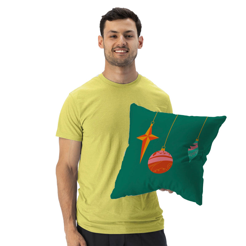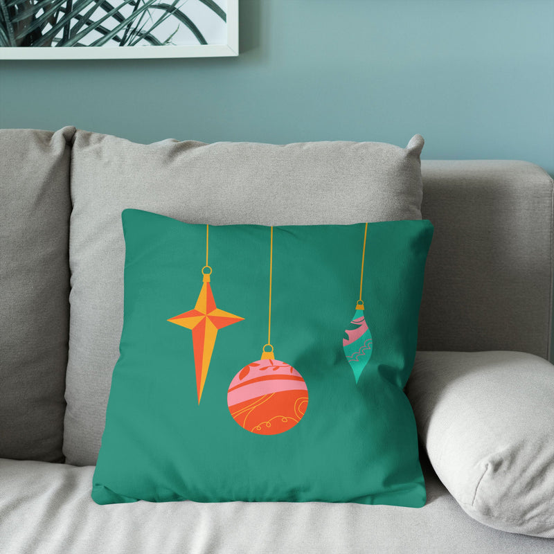 Celebrate the holidays with the Ornaments Throw Pillow, featuring three beautifully crafted ornaments hung vertically on a rich green background. This festive design creates a cheerful, elegant touch, perfect for enhancing your holiday d¨¦cor and spreading seasonal joy throughout your home. The bold contrast between the vibrant ornaments and deep green backdrop makes this pillow an eye-catching piece, whether displayed on your couch, chair, or bed. Each ornament showcases intricate details, capturing the beauty of traditional holiday d¨¦cor while creating a cozy, inviting atmosphere. Whether used for decoration or as a comfy accent, its festive charm will make your space feel extra special all season long.