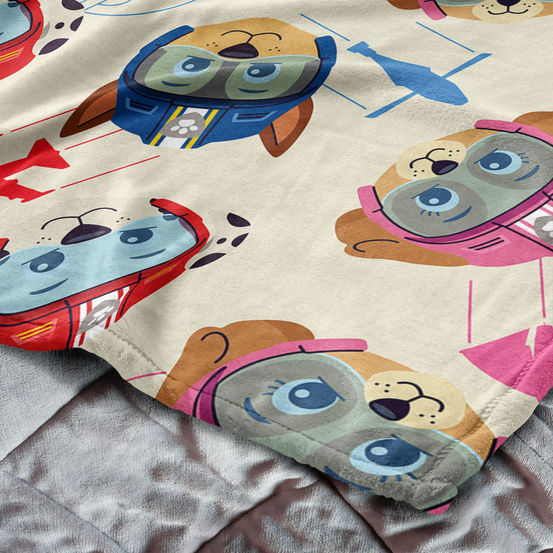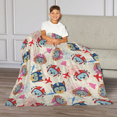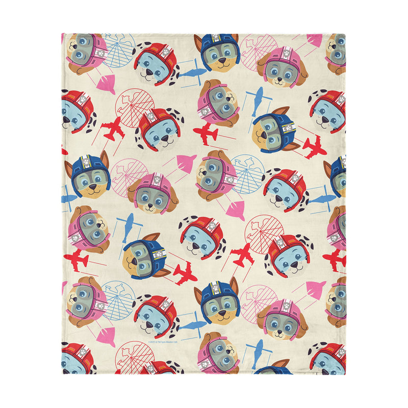 Get ready for high-flying comfort with the Nickelodeon Paw Patrol "Air Rescue Pattern" Silk Touch Throw Blanket. Featuring an all-over print of fan-favorite pups like Chase, Skye, and Marshall in their aviation helmets, this adventurous design bursts with playful energy. Silhouettes of planes, jet trails, and globe icons bring a bold, sky-high vibe to the look. Crafted from ultra-soft Silk Touch fabric, this lightweight blanket delivers cozy warmth that¡¯s perfect for nap time, movie marathons, or post-playtime wind-downs. Designed for everyday use, it¡¯s durable, easy to care for, and ideal for active little fans. Perfect for bedrooms, playrooms, or taking on the go, this throw adds a fun and colorful touch to any Paw Patrol setup. With bright graphics and energetic details, it's a great choice for kids who are always ready to take off on their next adventure.
