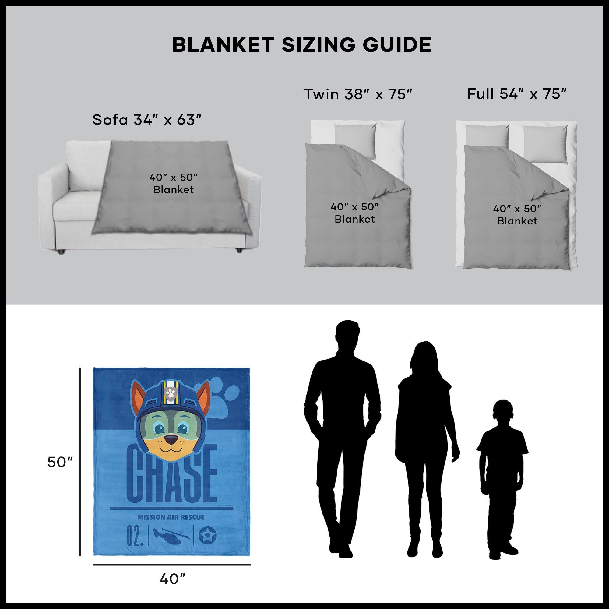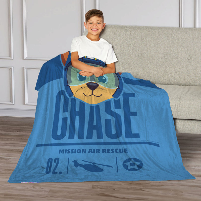 Gear up for a high-flying rescue with the Nickelodeon Paw Patrol "Chase Mission" Silk Touch Throw Blanket. Featuring Chase in his Air Rescue gear front and center, this action-themed design is perfect for fans who love a good mission. Bold graphics, official mission markings, and a bright blue backdrop make it an energetic addition to any space. Made with a smooth Silk Touch front and ultra-cozy Sherpa back, it delivers the ultimate in warmth and softness. Whether it's used during quiet time or imaginative play, this blanket wraps kids in comfort while they dream up their next adventure with Chase. Perfect for bedrooms, sleepovers, or movie nights, this blanket adds fun and function wherever it goes. Lightweight, durable, and easy to care for, it¡¯s a dependable companion for every pup on the go.