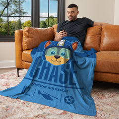 Gear up for a high-flying rescue with the Nickelodeon Paw Patrol "Chase Mission" Silk Touch Throw Blanket. Featuring Chase in his Air Rescue gear front and center, this action-themed design is perfect for fans who love a good mission. Bold graphics, official mission markings, and a bright blue backdrop make it an energetic addition to any space. Made with a smooth Silk Touch front and ultra-cozy Sherpa back, it delivers the ultimate in warmth and softness. Whether it's used during quiet time or imaginative play, this blanket wraps kids in comfort while they dream up their next adventure with Chase. Perfect for bedrooms, sleepovers, or movie nights, this blanket adds fun and function wherever it goes. Lightweight, durable, and easy to care for, it¡¯s a dependable companion for every pup on the go.