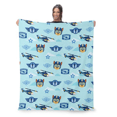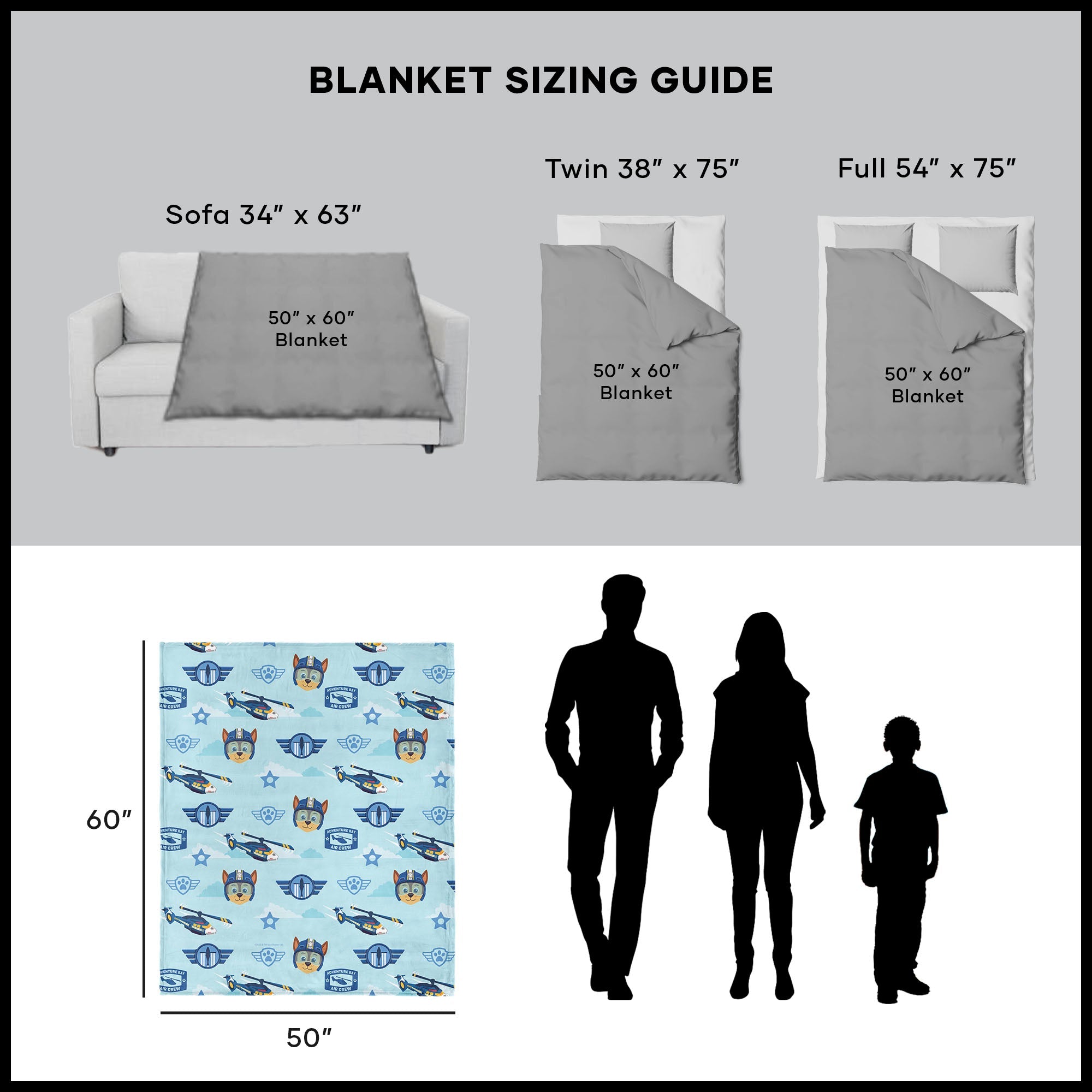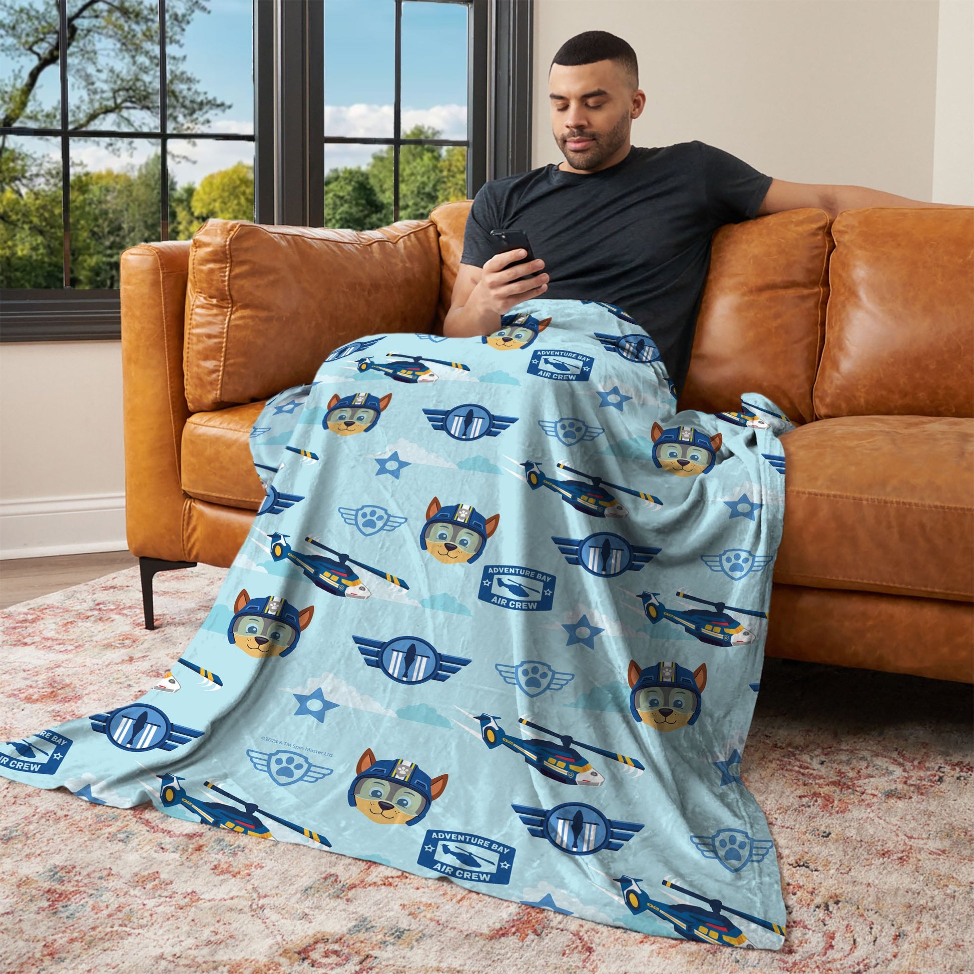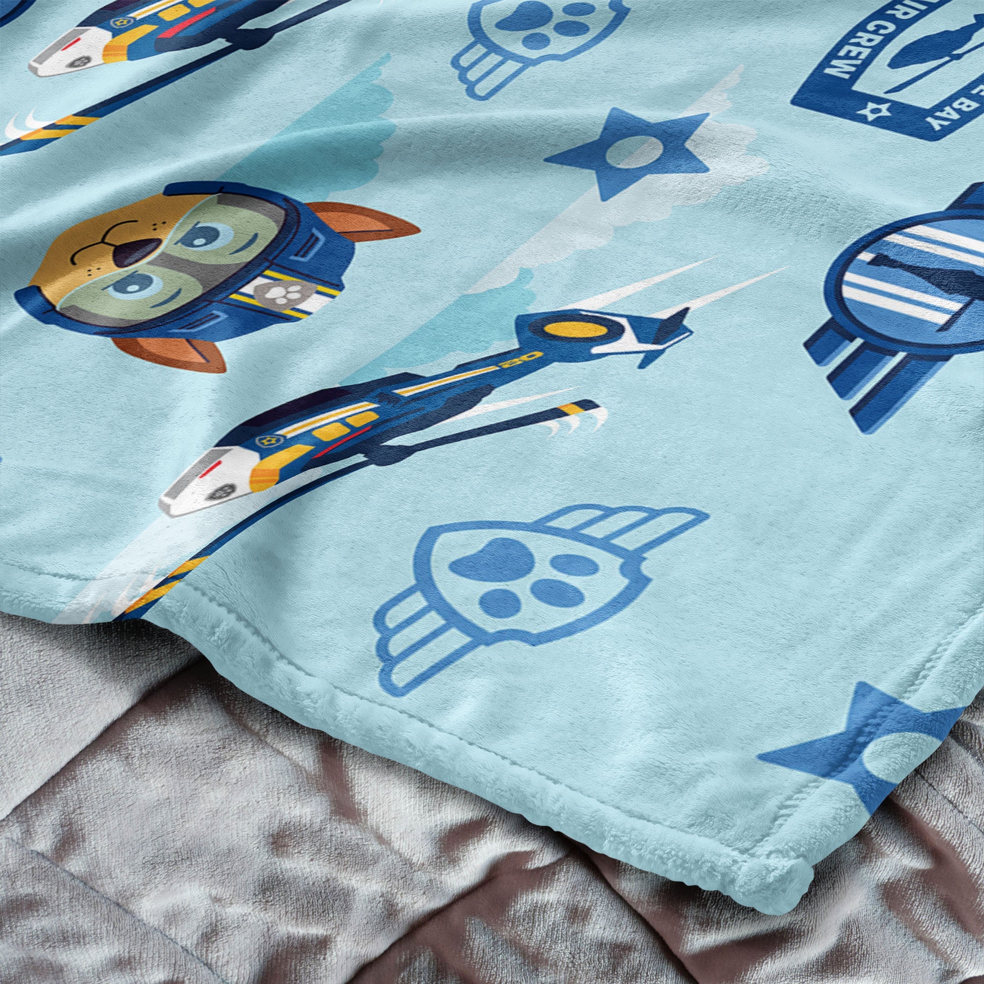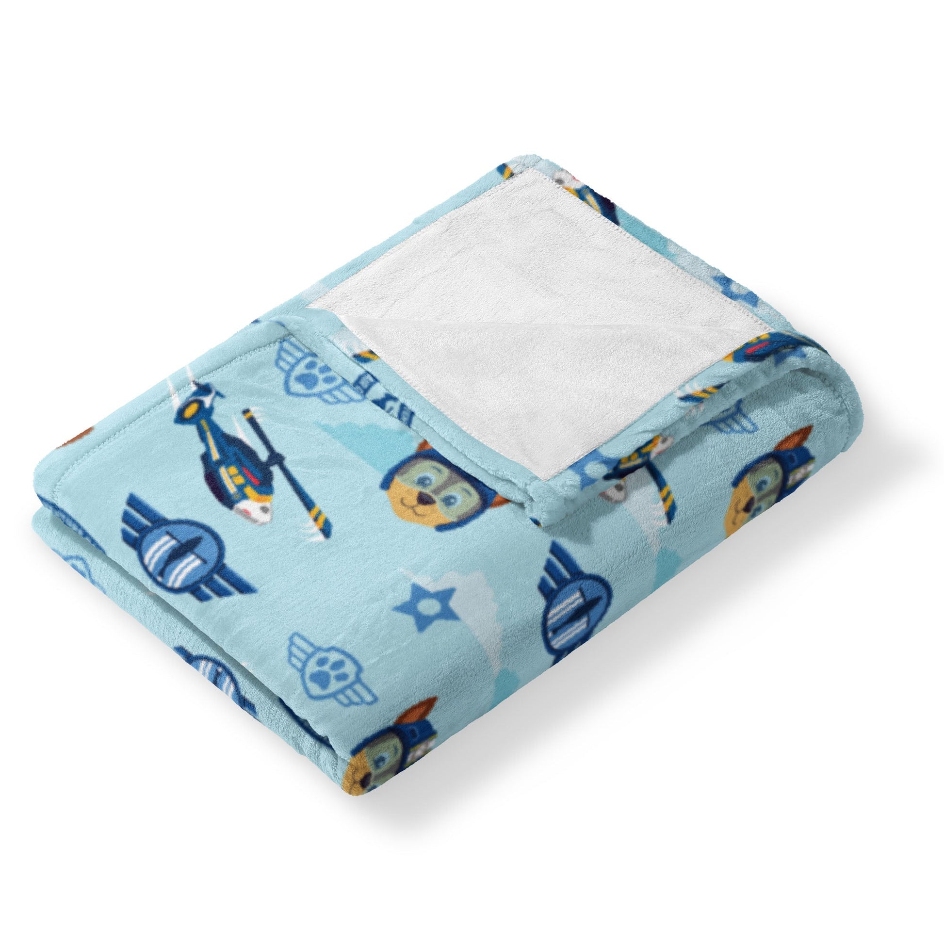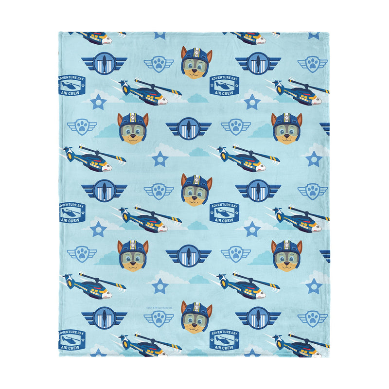 Adventure takes flight with the Nickelodeon Paw Patrol "Chase Rescue Pattern" Silk Touch Throw Blanket. Featuring Chase in full flight gear and an all-over pattern of helicopters, wings, badges, and cloud accents, this design channels the excitement of Adventure Bay¡¯s sky missions. Fun aviation symbols and soft blue tones make it a standout piece for young fans. Crafted from silky smooth, lightweight fabric, this blanket is perfect for snuggling during TV time, nap breaks, or travel. Soft to the touch and easy to care for, it¡¯s designed for comfort while holding up to everyday adventures. Ideal for bedrooms, play areas, or on-the-go fun, this throw adds a bold splash of Paw Patrol style. Whether they're dreaming of becoming part of the Air Crew or just looking for a cozy companion, kids will love wrapping up in this high-flying favorite.