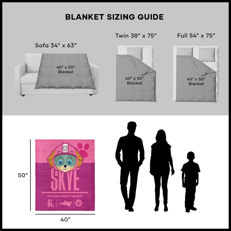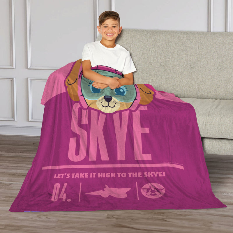 Get ready to soar with the Nickelodeon Paw Patrol "High to the Skye" Silk Touch Throw Blanket. Featuring fan-favorite pup Skye in her flight goggles and helmet, this bold and colorful design pops with shades of pink and playful aviation graphics. Her name is prominently displayed with the phrase ¡°Let¡¯s take it high to the Skye!¡± making it the perfect pick for young fans who dream big. Made from ultra-soft Silk Touch fabric, this throw offers a smooth, cozy feel that¡¯s ideal for cuddling up during movie nights, nap time, or everyday relaxation. Lightweight yet durable, it¡¯s built for comfort without sacrificing durability, making it a go-to accessory for little adventurers. Great for beds, play areas, or on-the-go travel, this throw adds a spirited burst of Paw Patrol energy to any kid¡¯s space. Whether they're winding down after a mission or gearing up for the next one, Skye fans will love having this blanket by their side.