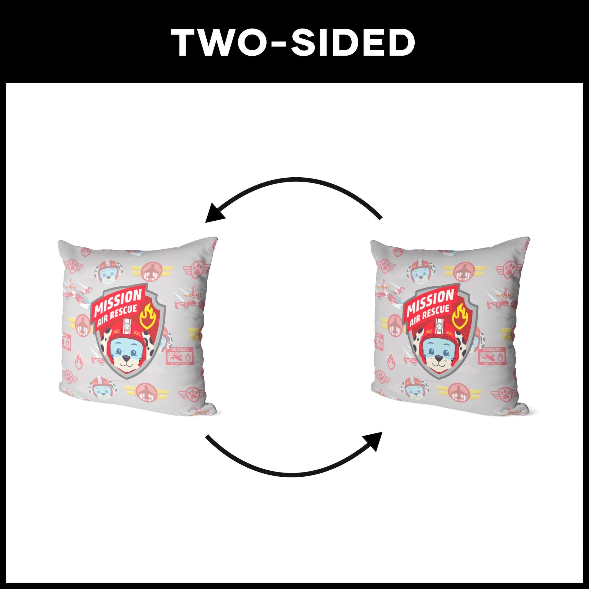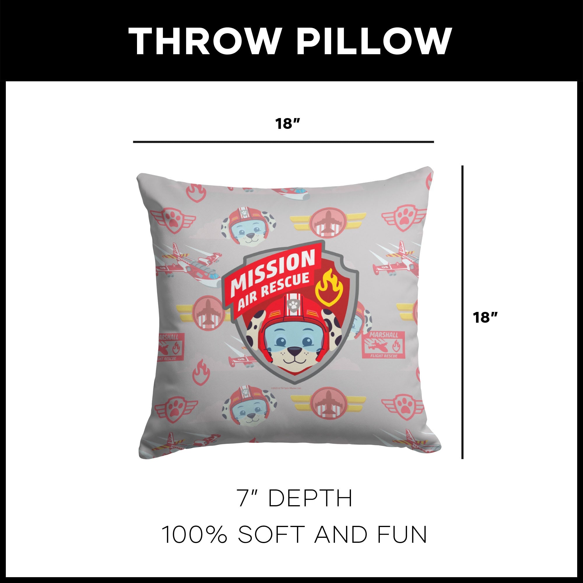 Gear up for action with the Nickelodeon Paw Patrol "Marshall Badge Pattern" Throw Pillow. Featuring a bold badge-style graphic of Marshall in his flight helmet, this design brings fire-fighting flair and heroic energy to any space. A repeating background of airplanes, flame icons, and mission patches makes it feel like an official rescue mission every time you look at it. Crafted with soft-touch fabric and a huggable fill, this pillow is ideal for relaxing, resting, or recharging between adventures. Whether it's for lounging in a playroom or adding personality to a child¡¯s bed, it brings both comfort and excitement to the room. Perfect for fans of Paw Patrol¡¯s fearless fire pup, this throw pillow is a fun and functional piece that kids will love. With its vibrant colors and mission-ready design, it¡¯s always ready to jump into action¡ªjust like Marshall himself.
