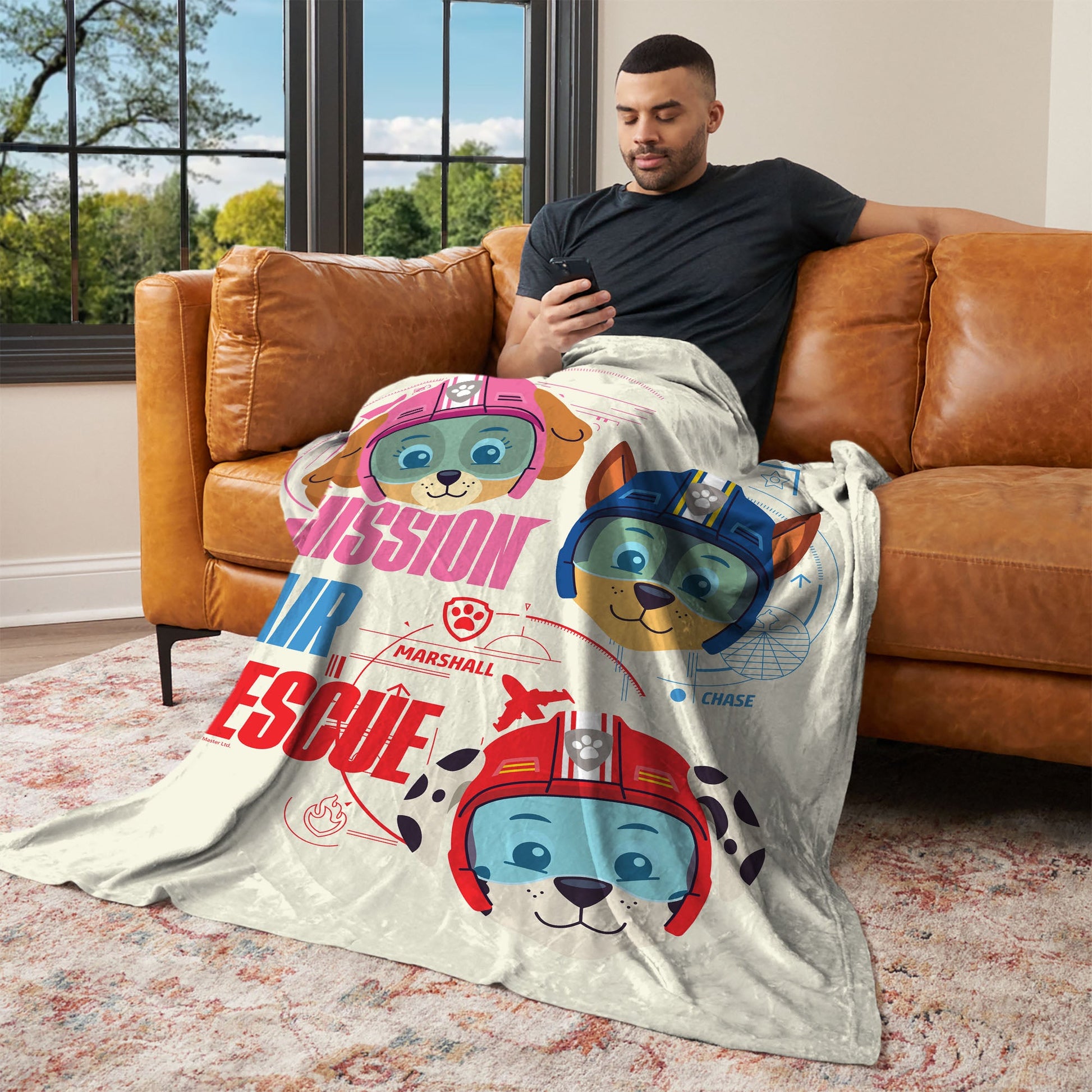 Gear up for action with the Nickelodeon Paw Patrol "Mission Air Rescue" Silk Touch Throw Blanket. Featuring Skye, Chase, and Marshall suited up in their aviation helmets, this bold design is full of high-flying energy. Stylized graphics and mission-ready text elements give it a dynamic, adventure-packed feel that's perfect for young fans. Crafted from ultra-soft Silk Touch fabric, this blanket provides cozy comfort for everything from bedtime to movie marathons. Lightweight and durable, it's easy to take along for travel, sleepovers, or anytime kids want to feel wrapped up in rescue-ready fun. Ideal for adding a pop of Paw Patrol excitement to bedrooms, playrooms, or couches, this throw is a must-have for little adventurers. With bright colors and favorite characters front and center, it¡¯s ready to soar into everyday moments with warmth and playful spirit.