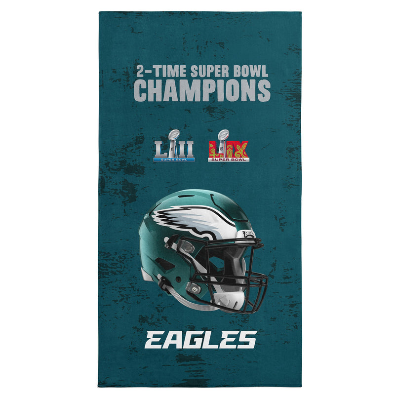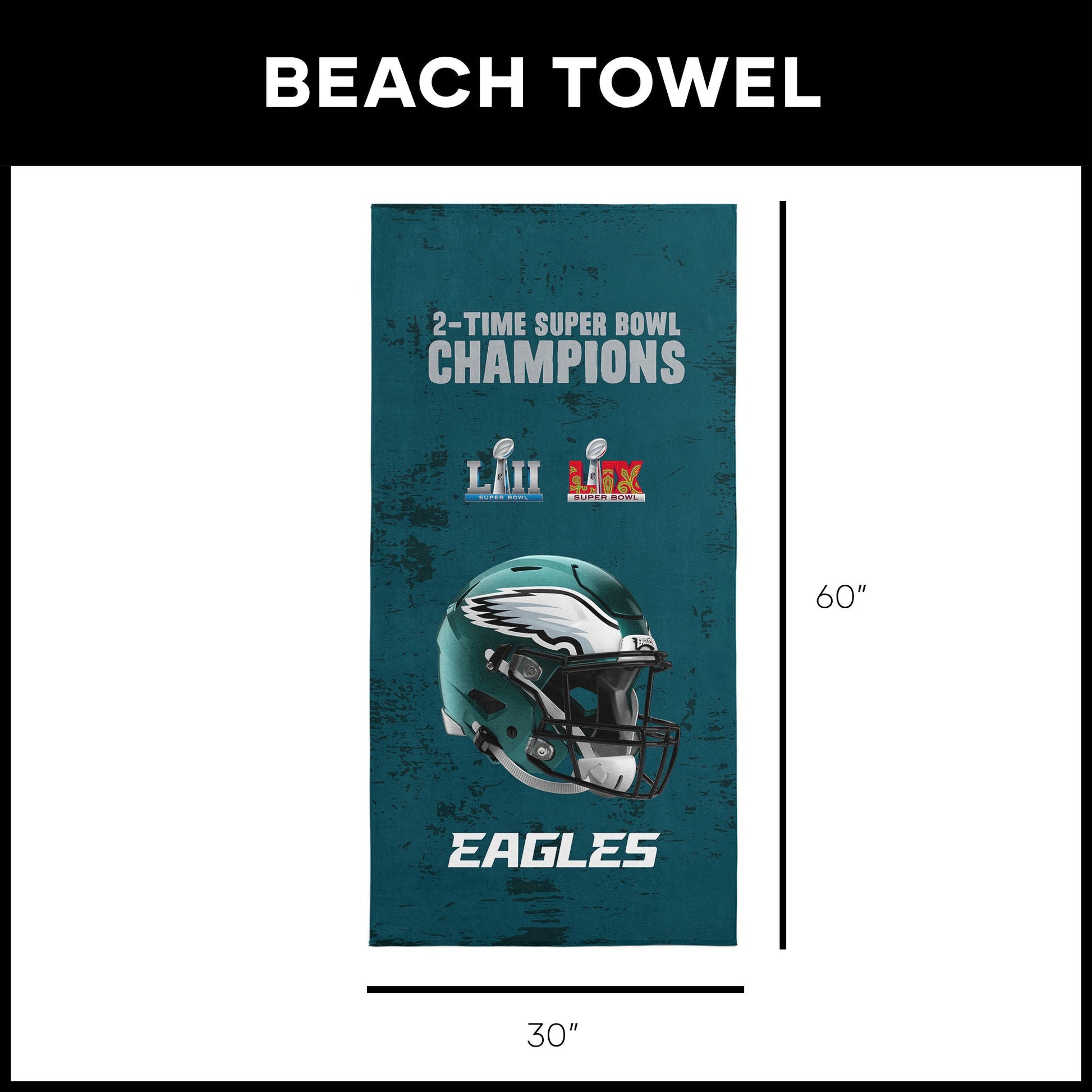 Philadelphia Eagles NFL 2025 Super Bowl LIX Multi Champ Unstoppable Beach Towel 30X60 Inches