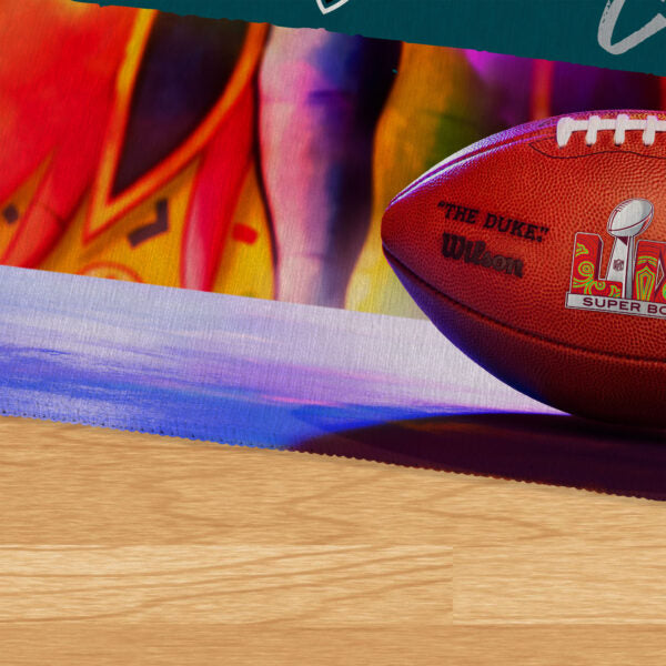 Showcase your pride with the Philadelphia Eagles NFL Super Bowl 59 ¡°Parade¡± Washable Rug, designed to commemorate a monumental achievement. Featuring the team logo, the official Super Bowl logo, football, and the words ?Super Bowl Champions,? this rug makes a bold statement in any space. Its vibrant colors and dynamic design bring the excitement of the big game into your home. Made with durability and comfort in mind, the ¡°Parade¡± rug combines a soft, low-pile surface with long-lasting materials, making it ideal for high-traffic areas. Whether it's displayed in a fan cave, living room, or office. Its design not only reflects team spirit but also adds a stylish element to your d¨¦cor. Maintaining its fresh and vivid appearance is easy, thanks to its machine-washable construction. Designed for fans who want to honor their team's championship run while keeping their space functional, a perfect blend of practicality and fandom.