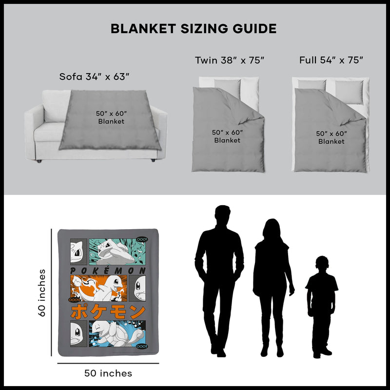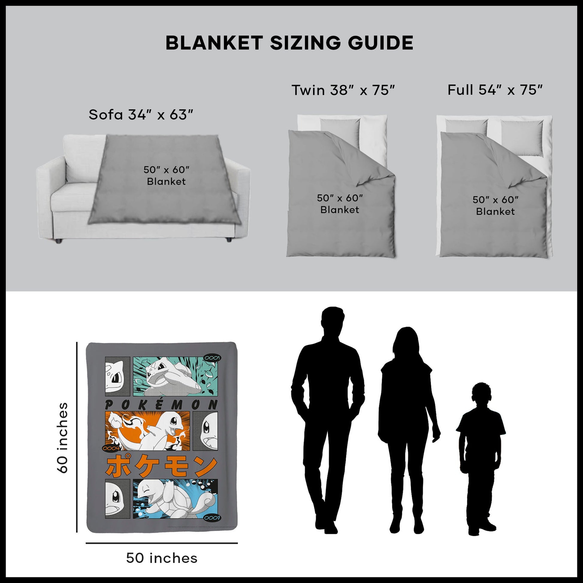 Pokemon Grass Fire Water Mircro Mink Sherpa Throw Blanket 50x60 Inches
