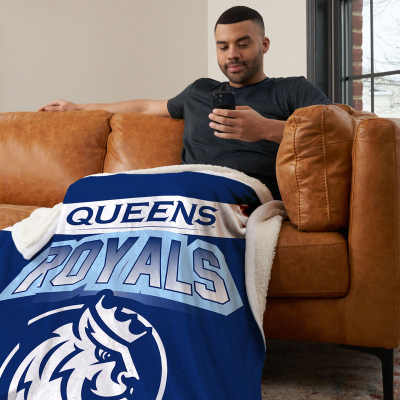 You'll never get cold cheering on your favorite team with this Queens University of Charlotte Silk Touch Sherpa Throw Blanket. Showcasing the team¡¯s bold logo and signature colors, this throw is designed to make a statement while keeping you comfortable during every game, study group, or lounging session. The luxurious Silk Touch front and soft Sherpa back combine to create an incredibly plush and comfortable blanket that you won¡¯t want to put down.