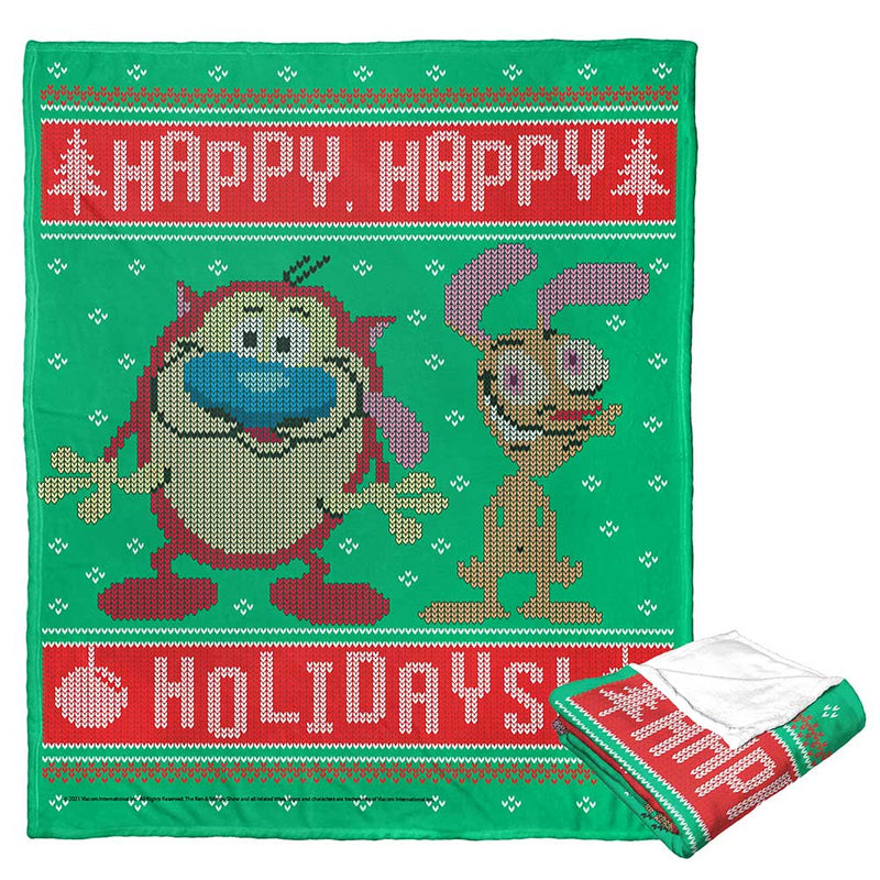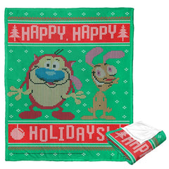 Nickelodeon Nick Rewind Ren And Stimpy Happy Happy Holidays Silk Touch Throw Blanket 50x60 Inches