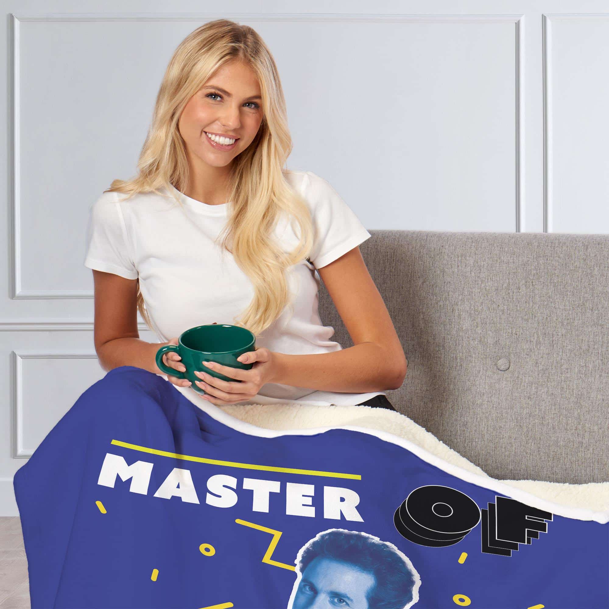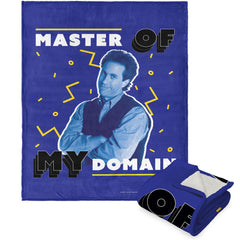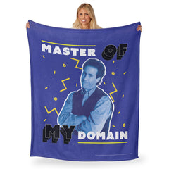Celebrate the iconic humor of Seinfeld with the "My Domain" Silk Touch Sherpa Throw! Featuring Jerry Seinfeld with a smirk on his face and the words "Master of My Domain" this throw captures the wit and charm of the beloved TV show. The playful design is sure to bring a smile to your face and add a touch of nostalgia to your space. Made from silky-smooth material, this blanket is perfect for snuggling up and enjoying your favorite Seinfeld episodes. Elevate your decor with this unique and humorous throw blanket!