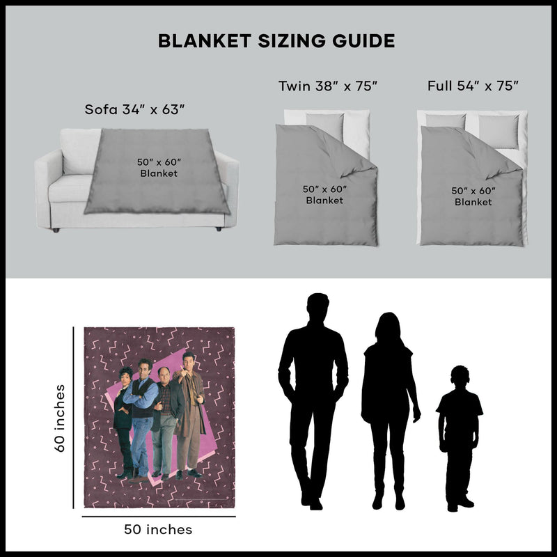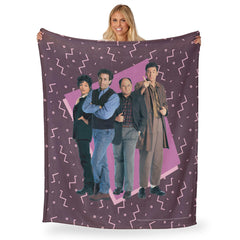 Step back in time with the Seinfeld's "The Gang" Silk Touch Throw Blanket! This throw features Jerry, George, Elaine, and Kramer on a retro background, capturing the essence of the iconic TV show's 90s charm. The vibrant design adds a touch of nostalgia and humor to any room, making it a must-have for Seinfeld fans. Whether you're binge-watching your favorite Seinfeld episodes or simply want to add a pop of personality to your decor, this throw is perfect for snuggling up and enjoying some laughs.